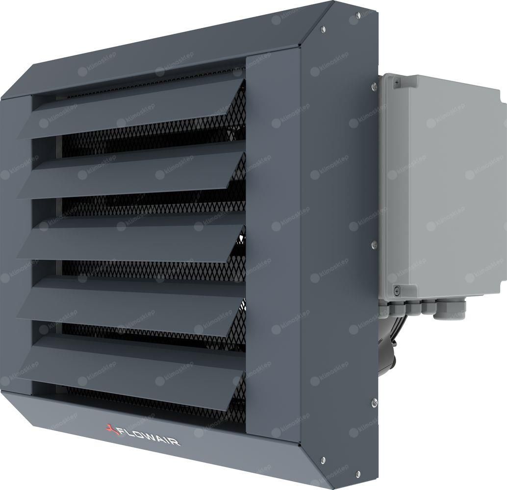 Innowacja wśród produktów marki FLOWAIR! Elektryczna nagrzewnica LEO EL L BMS Konsola montażowa w zestawie Brak konieczności podłączania instalacji ciepłej wody Wysoka wydajność 22,8 kW Dane techniczne Model: LEO EL L BMS Zakres mocy: 6,8 - 22,8kW Trzy stopnie grzania Maksymalna temperatura pracy: 50 °C Trzy prędkości obrotowe wentylatora Zasięg poziomy strumienia: 9,5 / 15 / 24 m Zasięg pionowy strumienia: 3,5 / 5,5 / 8,3 m Przepływ powietrza: 1700 / 2800 / 4250 m³/h Masa urządzenia: 27,8 kg Poziom ciśnienia akustycznego: 42,1 / 54,5 / 64,1 dB(A) Poziom mocy akustycznej: 57,2 / 69,6 / 79,2 dB(A) Max. pobór prądu wentylatora: 0,6 / 1,2 / 1,4 A Max. pobór mocy wentylatora: 120 / 240 / 330 W Zasilanie: 3x400 / 50 Zasilanie V/Hz Obudowa: Stal malowana proszkowo IP Wentylatora/Klasa izolacji: 54/F Producent: Flowair Opis produktu Agregaty grzewcze LEO EL tworzą niezależny, zdecentralizowany system ogrzewania. Są one wyposażone w grzałki elektryczne, które oddając ciepło, podgrzewają powietrze nadmuchiwane przez wentylator. Jest to idealne rozwiązanie dla pomieszczeń, które nie są uzbrojone w instalację ciepłej wody. Prosty montaż pozwala na sprawne podłączenie urządzenia jak i proste użytkowanie. Nagrzewnice LEO EL służą do ogrzewania wewnątrz pomieszczeń o maksymalnym zapyleniu 0,3g/m3. Nagrzewnice są zbudowane z wytrzymałych materiałów tj. aluminium, tworzywa sztuczne, miedź i stal cynkowa. Cechy oraz zalety nagrzewnic LEO EL Innowacyjne rozwiązania techniczne. Nowoczesne wzornictwo przemysłowe. Precyzyjnie wykonana, lekka bryła obudowy. Starannie dobrana kompozycja użytych materiałów. Dynamicznie ukształtowana kierownica powietrza. Nagrzewnica dozwolone do montażu ściennego oraz sufitowego. Konsola montażowa w zestawie. Aparaty LEO EL współpracują również z komorami mieszania tworząc najprostszy system wentylacji mechanicznej. Zastosowanie Nagrzewnica elektryczna LEO EL BMS przeznaczona jest do pracy wewnątrz pomieszczeń. Służy do ogrzewania obiektów o dużych kubaturach: hale przemysłowe, magazyny, pawilony handlowe, salony samochodowe, restauracje, namioty przemysłowe, hurtownie, obiekty sportowe, warsztaty, obiekty sakralne, suszarnie, garaże, obory, siłownie, stolarnie, stajnie, biura typu open-space. Znajdą zastosowanie wszędzie tam, gdzie nie są dostępne inne źródła ciepła, jak instalacja gazowa czy grzewcza. Grzałki Wymiennik ciepła tworzy dziewięć grzałek typu PTC, które dopasowują swoją temperaturę względem przepływu powietrza. Dodatkowo konstrukcja elementów grzejnych zapewnia maksymalne wykorzystanie ich mocy grzewczej na każdym stopniu grzania. Automatyczna destratyfikacja Nagrzewnice LEO EL BMS ze sterownikiem T-box posiadają funkcję automatycznej destratyfikacji, czyli wykorzystania ciepła zgromadzonego pod stropem, które wspomagane nagrzewnicami zapewnia ogrzewanie obiektów wielkokubaturowych. Sterowanie Urządzenie wyposażone jest zestaw automatyki zasilająco-sterująco-zabezpieczającej DRV-EL. Wentylator oraz grzałki posiadają zabezpieczenia termiczne, które przerywają pracę urządzenia w przypadku wystąpienia zbyt wysokiej temperatury. Zintegrowany układ automatyki DRV EL umożliwia regulację urządzenia za pomocą sterownika T-box z ekranem dotykowym lub 3-stopniowego termostatu TS. Możliwe jest też sterowanie poprzez zewnętrzne systemy centralnego sterowania BMS. Urządzenie posiada 3 stopnie wentylatora oraz 3 moce grzewcze. Ponadto, może pracować w trybie wentylacji. Wymiary Możliwości montażu Zasięg poziomy i pionowy Zakres mocy grzewczych Laboratorium badawcze - Etykieta jakości Do nowego typoszeregu nagrzewnic wodnych FlowAir wprowadził jako nowy standard etykiety jakościowe. Etykieta jakości zawiera parametry techniczne, kluczowe do prawidłowego i świadomego doboru: moc urządzenia, zasięg strumienia powietrza, poziom hałasu. Parametry te zostały określone przy realnych warunkach brzegowych jakie występują w większości obiektów. Badania zostały wykonane w oparciu i normy europejskie, standardy międzynarodowe jak również rodzime przepisy obowiązujące w Polsce. Konfiguracja systemu BMS FLOWAIR Integracja urządzeń za pomocą jednego sterownika. ELIS DUO - Kurtyno-nagrzewnice LEO D - Destratyfikator powietrza OXeN - Wentylacja bezkanałowa z odzyskiem ciepła LEO - Nagrzewnice powietrza ELIS - Kurtyny powietrzne