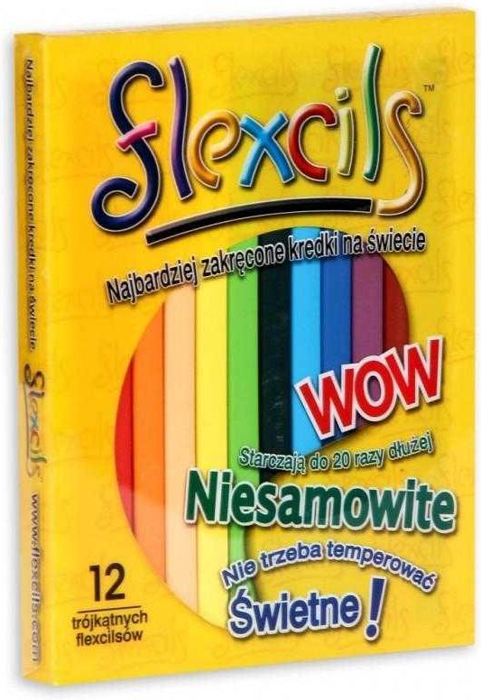 Trójkątne kredki Flexcils. Wykonane z tajemnych materiałów, nie łamią się jak zwykłe kredki i nawet nie trzeba ich temperować. - liczba kolorów: 12 - nie wymagają temperowania Uwaga! brak 2 kredek