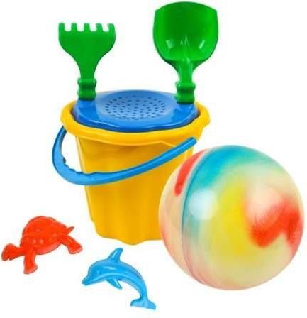 Komplet do piasku z piłką MIX BĄCZEK __________________________________________________________________ Kompletny zestaw do zabawy w piasku z piłką Wiaderko z sitkiem, foremki, grabki, łopatka oraz piłka w tym zestawie nie brakuje niczego! Komplet akcesoriów do zabawy w piasku zapewni każdemu …