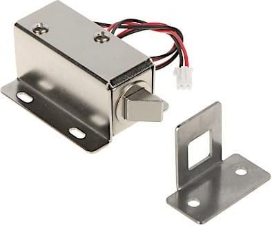 Zaczep elektromagnetyczny szafkowy DT-03 Dantom Kod towaru: DT-03 Zamek szafkowy DT-03 pozwala na wygodne oraz bezpieczne zarządzanie dostępem do szafek lub skrzynek depozytowych w miejscach takich, jak: lotniska, centra handlowe, pływalnie, siłownie, hale sportowe itp. Dzięki swojej konstrukcji zamek w przypadku zaniku zasilania pozostaje zamknięty. Dane techniczne: Napięcie znamionowe: 12 V DC Pobór prądu: 1 A Zastosowanie: drzwi prawe / drzwi lewe Blokada zapadki: nie Funkcja pamięci: nie Praca rewersyjna: nie Regulacja luzu: nie Wybrane cechy: Zamek pozostaje zamknięty, gdy nie jest zasilany - wysunięty trzpień, Odległość wysuwu trzpienia : 10 mm Możliwość samodzielnego przestawienia trzpienia co 90° Otwarcie impulsem napięciowym : < 1 s ... max. 10 s Dopuszczalny czas nieprzerwanej pracy: ≤ 10 s Waga: 0.16 kg Wymiary: 42 x 30 x 54 mm Producent / Marka: DANTOM
