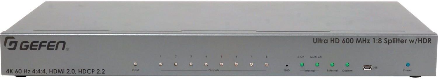 Gefen EXT-UHD600-18 | Splitter HDMI 4K UHD, 1 x 8, HDR, 4K 4:4:4, HDMI 2.0 Projektowanie systemów zdolnych do dystrybucji mediów w rozdzielczości 4K UHD wymaga obsługi dzisiejszych treści i zapewnienia miejsca na treści z przyszłości. Seria splitterów EXT-UHD600 przenosi HDMI 2.0 do najwyższej …