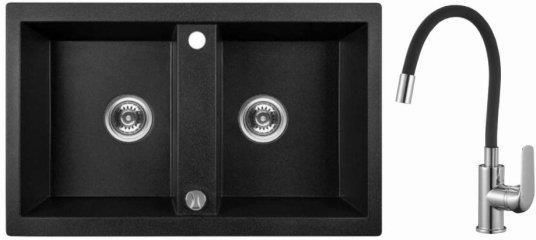 Zlewozmywak granitowy BARBADOS + bateria Elza SBBE 720T czarny Producent: Laveo Model: SBBE720T Zlewozmywak granitowy BARBADOS + bateria Elza czarny SBBE 720T Zlewozmywak BARBADOS jest wysokiej klasy produktem doskonale znanego w kraju wytwórcy. Zlewozmywak wykończono czarnym i wyszlifowanym granitem, który wygląda bardzo estetycznie i pasuje do każdego rodzaju zabudowy kuchennej. Szerokość: 480 mm Długość: 780 mm Głębokość: 170 mm Do szafki: 800 mm Odpływ: 3,5 cala Model: 2 komory Korek automatyczny: tak Syfon w zestawie: space saving (oszczędzający miejsce) Elza – kuchenna propozycja dla tych, którzy od wyposażenia wnętrz poza funkcją oczekują też ciekawej estetyki. Dostępna w dwóch kolorach, gumowa wylewka sprawi, że otoczenie zlewozmywaka będzie wyglądało nowocześnie. Poza ciekawym wyglądem, wyginana wylewka to też gwarancja ułatwienia prac kuchennych. Bateria zlewozmywakowa Stojąca z elastyczną wylewką Wykończenie: chrom/czarny Głowica: ceramiczna 35 mm W bateri zastosowano aerator oszczędzający wodę Klasa przepływu A ≤ 15,0 l/min Grupa akustyczna I – ≤ 20 dB