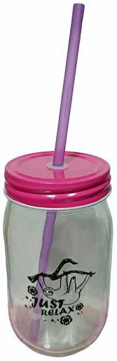 - słoik szklany do picia ze słomką - idealny do koktajli i drinków - materiał: szkło - pojemność: 450 ml