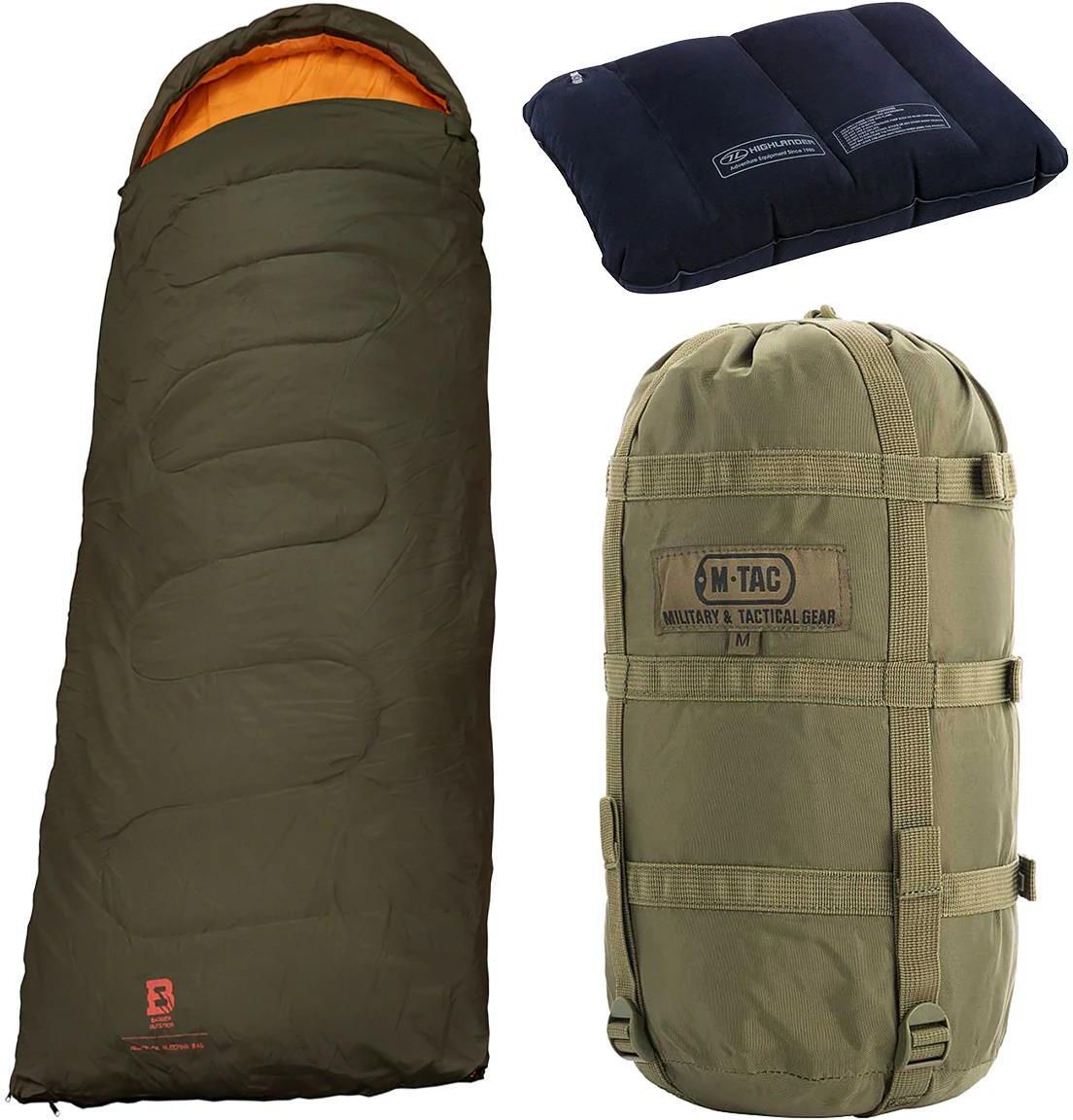 Zestaw składający się z 3 elementów. Zawiera wyposażenie przydatne podczas nocowania poza domem np. w namiocie lub pod gołym niebem w czasie wypraw outdoorowych lub biwaków.
