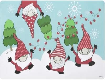 Podkładka na stół marki AMBITION Gnome, wielokolorowa, 40 x. 30 cm, z motywem krasnala. Łatwa w czyszczeniu, idealna na świąteczny stół.
