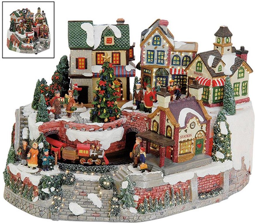 Rozświetl swoje święta za pomocą tej urokliwej świątecznej figurki z polirezu, przedstawiającej malownicze świąteczne miasteczko. Podświetlane okna w domach, tworząc niepowtarzalny efekt ciepła i atmosfery. Ruchomy świąteczny pociąg dodaje dynamiki i radości, przemierzając malownicze tory. Figurki świąteczne miasteczko wprowadzają życie w krajobraz! To nie tylko ozdoba, ale także interaktywne doświadczenie świąteczne, zasilane na prąd, co sprawia, że ​​tworzy niesamowity efekt w każdym pomieszczeniu. Precyzyjnie wykonane detale, takie jak migające światełka na choince czy uśmiechnięte postaci, sprawiają, że to miasteczko emanuje magią Bożego Narodzenia. Idealne na stół, komodę czy parapet, to miasteczko doskonale wprowadzi świąteczny nastrój do Twojego domu. Niech światło podświetlanych okien i ruchomy pociąg tworzą niezapomniany pejzaż świąteczny. Wprowadź do swojego wnętrza świąteczny urok z tą wspaniałą figurką! Podaruj sobie lub bliskim klimat świąt i to oto świąteczne zimowe miasteczko! Wymiary: 24x24x22 cm Materiał: polirez Elementy ruchome: pociąg (ruchome miasteczko świąteczne) Elementy świetlne: tak - podświetlane światełka w oknach Zasilanie: na prąd UWAGA! OSTATNIE SZTUKI TEJ PRZEPIĘKNEJ DEKORACJI!