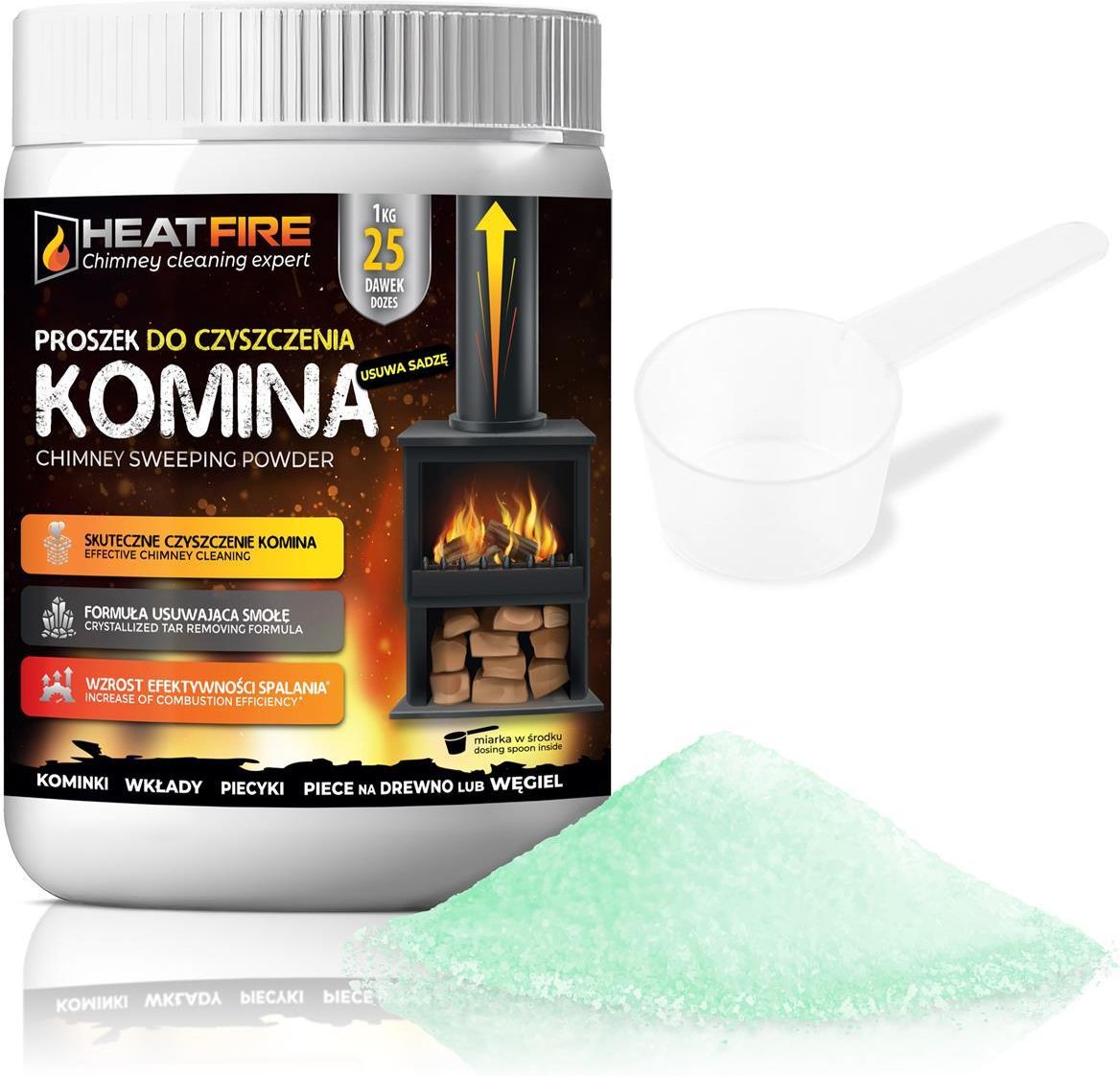 PROSZEK do CZYSZCZENIA KOMINA PIECA HEATFIRE PROSZEK do KOMINKA USUWA SADZĘ 1kg Zastosowanie Proszek do kominka Proszek na sadzę Proszek na smołę Czyszczenie komina HeatFire Proszek do czyszczenia komina pieca usuwa sadzę smołę 1kg Proszek do czyszczenia kominków HeatFire Chimney cleaning expert to …