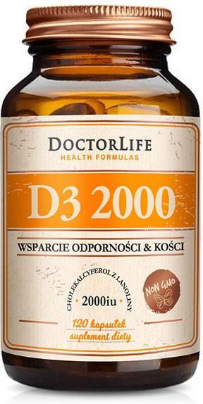 SUPLEMENT DIETY Doctor Life Witamina D3 2000 120 kapsułek D3 2000 to wysokiej jakości witamina D3 w postaci cholekalcyferolu z owczej lanoliny, która jest najbardziej biologicznie aktywną formą witaminy D. Witamina D3 jest rozpuszczalna w tłuszczach, dlatego mieszając ją z najwyższej jakości oliwą …