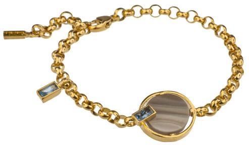 BRANSOLETA MOTYLE Diuna MG3624 MG3624 Bransoletka srebrna – złocona, próby 925, wykonana ręcznieWykończenie srebra: „królewskie złoto 24K”Kamień naturalny: krzemień pasiasty o średnicy 1,4 cmNanokryształy: Aquamarine o wymiarach 3 x 6 mmBransoletka posiada możliwość pełnej regulacji Bransoletka …