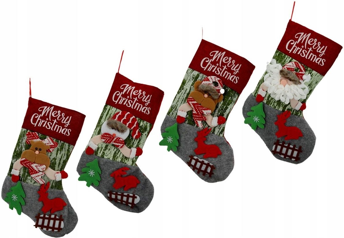Skarpeta świąteczna (1 z 4 wzorów) 219-1580 Skarpeta świąteczna to efektowna ozdoba nie tylko na kominek, ale także np. na drzwi lub okno. Jest kolorowa, miła w dotyku i stanowi okazałą dekorację każdego domu w czasie świąt. Wzór wysyłany losowo Informacje o produkcie Rozmiar 24x40cm Rodzaj opakowania folia