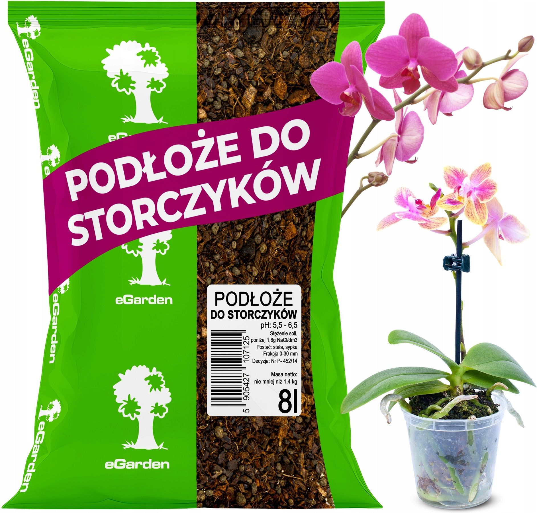 EGarden Podłoże Ziemia do Storczyków Orchidei 8L Podłoże do storczyków – lekkie, przewiewne, gotowe do użycia Profesjonalnie przygotowane podłoże do uprawy i przesadzania storczyków epifitycznych. Zapewnia odpowiednie napowietrzenie korzeni, właściwą wilgotność oraz zdrowy wzrost roślin po przesadzeniu. Podłoże posiada lekką i przewiewną strukturę, dzięki czemu korzenie mogą swobodnie oddychać i nie są narażone na gnicie. Idealne do storczyków uprawianych w doniczkach z otworami drenażowymi. Skład i zalety • kora, chipsy kokosowe i perlit – doskonała cyrkulacja powietrza i odprowadzanie nadmiaru wody • torf wysoki ze startową dawką nawozu • brak konieczności nawożenia przez 3–4 tygodnie po przesadzeniu • odpowiednie również do przezroczystych doniczek • pH: 5,5 -6,5 • Frakcja 0-30 mm • 8 Litrów Jak używać Podłoże jest mechanicznie sprasowane, przed użyciem należy je rozluźnić, w razie potrzeby lekko nawilżyć. Najlepszy okres przesadzania to wiosna, jednak w razie potrzeby można wykonać zabieg przez cały rok. Ważne wskazówki • storczyki lepiej rosną w lekko ciasnych doniczkach • podlewać rzadko, po przeschnięciu korzeni • korzenie nie mogą stać w wodzie