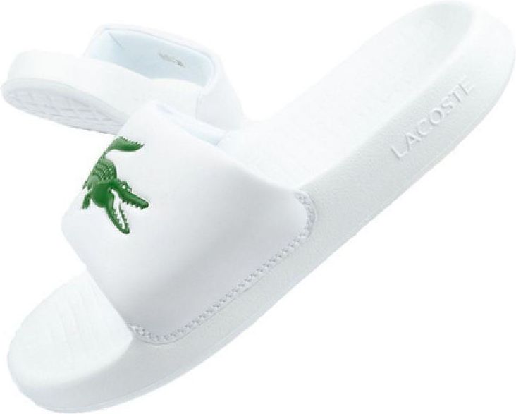 Klapki laczki męskie Lacoste Serve Slide [02082] białe. Lacoste – francuskie przedsiębiorstwo z branży odzieżowej. Lacoste S.A. Zajmuje się sprzedażą ubrań, butów, perfum, okularów i zegarków. Logo firmy to zielony krokodyl. Buty sportowe marki Lacoste to bardzo modna propozycja dla każdego mężczyzny. Idealne obuwie do każdej stylizacji. Męskie klapki marki Lacoste. Cholewka wykonana z najwyższej jakości materiału syntetycznego. Antypoślizgowa wkładka zapewnia, że Twoje stopy nie będą się przesuwały podczas spaceru. Lekka podeszwa z wysokogatunkowego tworzywa odpowiada za wysoki komfort użytkowania. Idealne obuwie do każdej stylizacji. Buty sportowe sklep Butomania.pl Buty sportowe od Lacoste w standardowych rozmiarach 39.5, 40, 40.5, 41, 42, 42.5, 43, 44, 44.5, 45, 46, 46.5, 47. Zobacz jakie rozmiary są dostępne. Sklep Butomania.pl to największy wybór obuwia sportowego dla całej Twojej rodziny. Kupując w naszym sklepie internetowym masz gwarancję, że towar jest oryginalny i pochodzi z oficjalnej sieci dystrybucyjnej. W ciągu 30 dni możesz dokonać zwrotu bądź wymiany towaru bez podania przyczyny.,