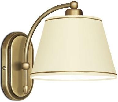 Klasyczny kinkiet mosiężny z abażurem. - Wykonany w całości z elementów z pełnego mosiądzu. Mosiądz to trwały, szlachetny i ponadczasowy materiał - kliknij, aby dowiedzieć się więcej. - Wykończenie mosiądzu: złota patyna.- Abażur ecru zdobiony wypukłymi złotymi paskami. Brak możliwości zamówienia z innymi kolorami materiału.- Wymiary całkowite: wysokość 23cm, głębokość 27cm, średnica abażura 20cm, wysokość abażura 14cm.- Możliwość zainstalowania włącznika łańcuszkowego (bez dopłaty), opis na dole strony:http://www.mninteriors.pl/lampy-na-zamowienie - Żródło światła: 1xE27 (żarówka tradycyjna/żarowa o mocy max. 60W) lub żarówka energooszczędna albo LED o większej mocy (np. odpowiednik 100W). Lampa jest fabrycznie nowa, wyprodukowana w Polsce. Gwarancja: 24 miesiące. Seria YA - zobacz wszystkie lampy