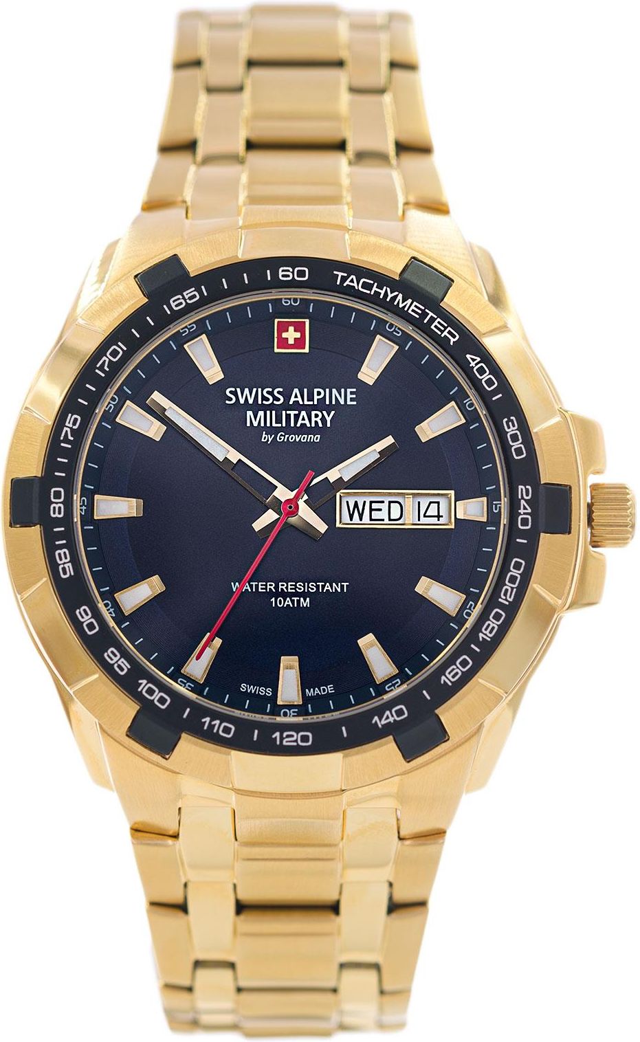 Swiss Alpine Military SAM7043.1115 Zegarek Swiss Alpine Military SAM7043.1115 to wyjątkowe połączenie elegancji i funkcjonalności, które z pewnością przyciągnie uwagę każdego miłośnika modowych akcesoriów. Ten model wyróżnia się klasycznym wyglądem oraz wysoką jakością wykonania, co czyni go idealnym dodatkiem zarówno do formalnych, jak i casualowych stylizacji. Dzięki zastosowaniu mechanizmu kwarcowego, zegarek zapewnia precyzyjne odmierzanie czasu, co jest istotne dla osób prowadzących aktywny tryb życia. Mechanizm i funkcje zegarka W Swiss Alpine Military SAM7043.1115 zastosowano mechanizm kwarcowy, który gwarantuje niezawodność i wysoką precyzję. Zegarki Swiss Made są znane z doskonałej jakości, co sprawia, że ten model nie tylko dobrze wygląda, ale także działa niezawodnie. Dodatkowo, zegarek wyposażony jest w datownik, co czyni go praktycznym rozwiązaniem na co dzień. Materiały i wodoszczelność Koperta zegarka wykonana jest z wysokiej jakości stali, co zapewnia jej odporność na uszkodzenia oraz długowieczność. Złoty kolor koperty nadaje Swiss Alpine Military SAM7043.1115 elegancki i luksusowy wygląd. Co więcej, wodoszczelność na poziomie 100 metrów sprawia, że noszenie zegarka podczas pływania, a nawet nurkowania, nie stanowi problemu. To istotna cecha dla osób, które spędzają czas w wodzie lub na świeżym powietrzu. Szkło i pasek Model ten wyposażony jest w mineralne szkło, które charakteryzuje się dobrą przejrzystością oraz odpornością na zarysowania. Dzięki temu, tarcza zegarka pozostaje czytelna przez długi czas. Pasek zegarka to bransoleta wykonana ze stali, co zapewnia zarówno komfort noszenia, jak i elegancki wygląd. Złoty kolor paska doskonale komponuje się z kopertą, co czyni ten model spójnym i stylowym dodatkiem. Wymiary zegarka Wymiary zegarka są kluczowe dla komfortu użytkowania. Szerokość koperty wynosi 42 mm, a wysokość koperty to 50 mm. Szerokość paska to 24 mm, co zapewnia stabilność na nadgarstku. Dzięki tym wymiarom, zegarek jest idealny do codziennego noszenia, a jego prezentacja jest atrakcyjna zarówno w formalnych, jak i casualowych stylizacjach. Kluczowe cechy produktu Oto najważniejsze cechy zegarka Swiss Alpine Military SAM7043.1115: nie zawiera niklu, mechanizm kwarcowy, wodoszczelność 100 m, złoty kolor koperty i paska, bransoleta wykonana ze stali, datownik, mineralne szkło. Zegarek Swiss Alpine Military SAM7043.1115 to model, który łączy w sobie elegancję, funkcjonalność oraz wysoką jakość wykonania. Dzięki zastosowaniu wysokiej jakości materiałów oraz precyzyjnego mechanizmu, jest to inwestycja, która będzie służyć przez długi czas.