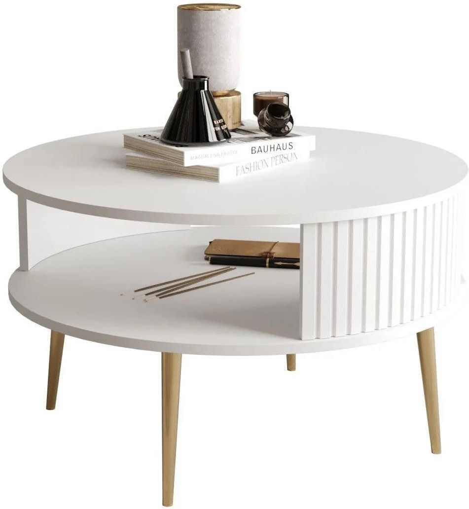 Fabryka Mebli Rawa Stolik Kawowy Moonday Złoty Biały 0.81x0.81m Okonek