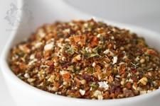 Posypka dekoracyjna do mięs i pasztetów Skład: papryka czerwona, marchew, gorczyca, papryka zielona, pieprz czarny, pieprz biały, cebula, seler, kolendra. Kraj pochodzenia: Wyprodukowano w Polsce Stosujemy jako: posypkę dekoracyjną do wędlin, wędlin drobiowych, wyrobów garmażeryjnych oraz pasztetów …