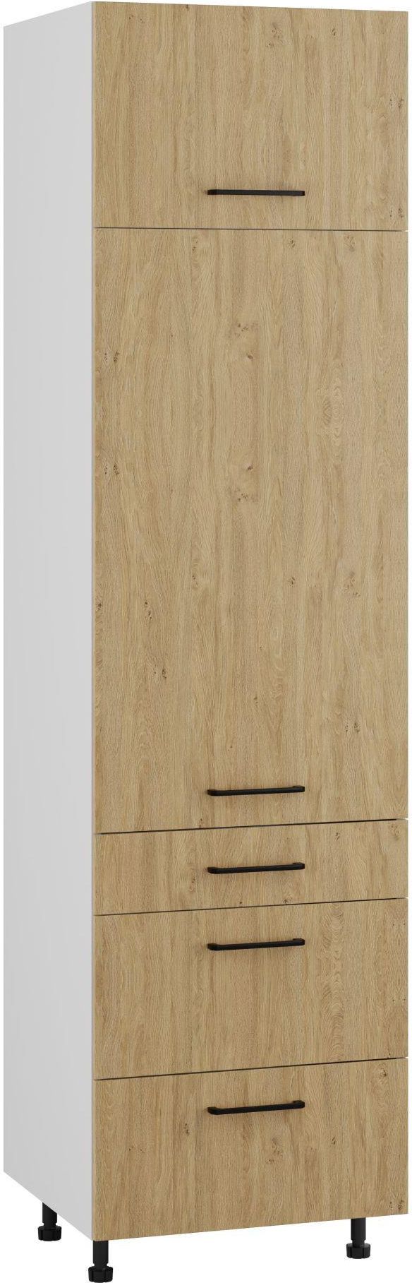 BARI SŁUPEK WYSOKI DS3-60-220 MODERN DĄB KAMIENNY to wyjątkowo pojemny i funkcjonalny model, który zapewnia optymalną przestrzeń do przechowywania. Prezentowany słupek do kuchni mierzy 60 cm szerokości, 230 cm wysokości oraz 58 cm głębokości. Produkt z kolekcji kuchni Komfort wyróżnia się ciepłym odcieniem frontu, którego struktura usłojenia doskonale imituje powierzchnię mebli kuchennych z drewna naturalnego. Łatwy w pielęgnacji, a taże odporny na uszkodzenia mechaniczne słupek do kuchni posiada innowacyjne zawiasy oraz prowadnice, które odpowiadają za ciche i bezpieczne domknięcie drzwi.