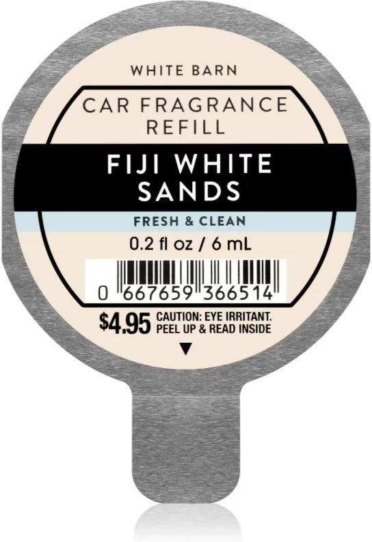 Bath & Body Works Fiji White Sands, 6 ml, Zapachy do samochodu Zapachy do domu, Zapach do samochodu Bath & Body Works Fiji White Sands zmieni Twoje podróże w niezapomniane przeżycie. Doda przytulności wnętrzu każdego samochodu, napełni przyjemnym zapachem, wywołując wrażenie harmonii. Właściwości: drzewny zapach Sposób użycia: Postępuj zgodnie z załączoną instrukcją.