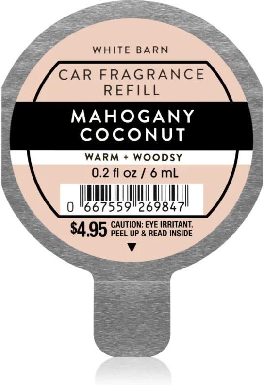 Bath & Body Works Mahogany Coconut, 6 ml, Wkłady do zapachów samochodowych Zapachy do domu, Zapewnij sobie pełen komfort i przyjemne doznania zmysłowe również podczas podróży autem. Zapasowe napełnienie zapachu do samochodu Bath & Body Works pozwoli Ci cieszyć się aromatycznymi doznaniami podczas …