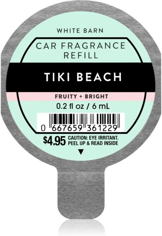 Bath & Body Works Tiki Beach, 6 ml, Zapachy do samochodu Zapachy do domu, Zapach do samochodu Bath & Body Works Tiki Beach zmieni Twoje podróże w niezapomniane przeżycie. Doda przytulności wnętrzu każdego samochodu, napełni przyjemnym zapachem, wywołując wrażenie harmonii. Właściwości: owocowy zapach świeży zapach Sposób użycia: Postępuj zgodnie z załączoną instrukcją.