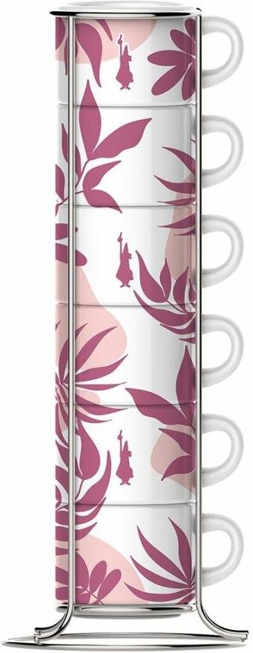 Komplet 6 filiżanek Bialetti przeznaczonych do espresso. Naczynia są wykonane z grubej porcelany, a każda z filiżanek ma pojemność 90ml i jest ozdobiona wzorem. Filiżanki można przechowywać w wygodny sposób jedna na drugiej na dołączonym stojaku. Komplet 6 filiżanek Bialetti przeznaczonych do espresso. Naczynia są wykonane z grubej porcelany, a każda z filiżanek ma pojemność 90 ml i jest ozdobiona wzorem. Filiżanki można przechowywać w wygodny sposób jedna na drugiej na dołączonym stojaku.
