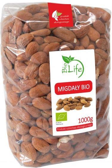 Biolife Naturalne Migdały Całe Orzechy 1000g Rozkoszuj się wyjątkowym smakiem i wartościami odżywczymi z Migdałów Naturalnych Biolife. Nasze migdały to doskonały wybór dla tych, którzy cenią sobie zdrowy styl życia i wysoką jakość. Każdy migdał został starannie wyselekcjonowany, aby zapewnić Ci najwyższą jakość i świeżość. Migdały to źródło niezbędnych składników odżywczych, takich jak witaminy, minerały i zdrowe tłuszcze. Nasze migdały są naturalnymi, nieprzetworzonymi orzechami, które nie zawierają sztucznych dodatków ani konserwantów. Dzięki temu możesz cieszyć się ich pełnym smakiem i korzyściami dla zdrowia bez obaw o sztuczne substancje. Opakowanie zawierające 1 kg migdałów zapewnia wystarczającą ilość tego pysznego przysmaku, aby cieszyć się nim w różnorodnych przepisach kulinarnych, włączając je do śniadań, deserów, sałatek czy też jako samodzielną przekąskę. Migdały Biolife to doskonały wybór dla osób, które dbają o swoje zdrowie i smakują życie w najczystszej postaci. Odkryj ich wyjątkowy smak i korzyści dla zdrowia już dziś! Tabela wartości odżywczych Wartość energetyczna 2525 kJ / 612 kcal Białko 19 g Węglowodany 5,4 g w tym cukry 3,9 g Tłuszcz 54 g w tym kw. tłuszcze nasycone 4,1 g Skład: migdały ekologiczne 100% Producent: BioLife Dystrybucja: Naturalnie Zdrowe Sp. z o.o.