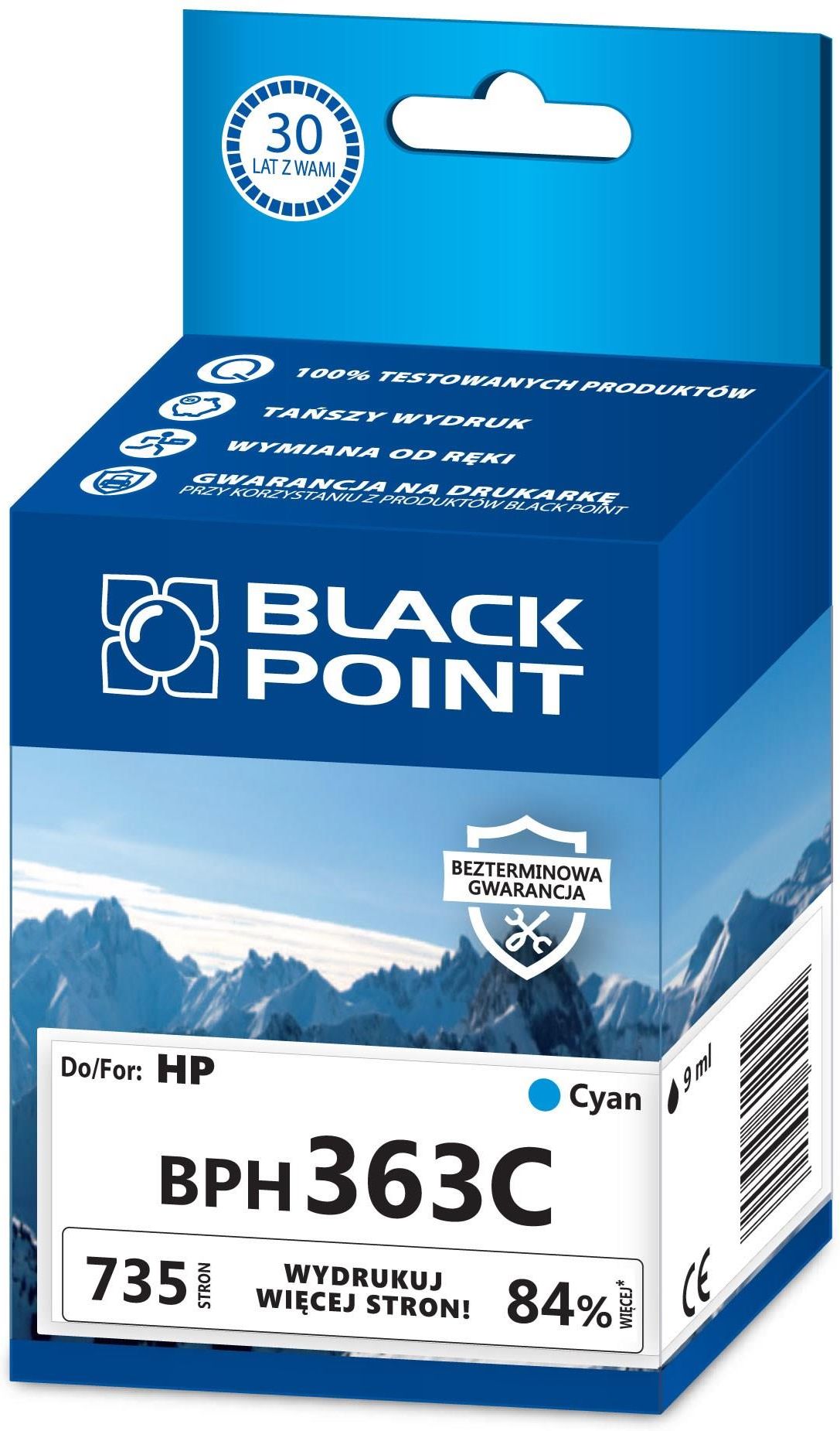 Kartridż atramentowy Black Point BPH363C. Zastepuje HP C8771EE. Kolor: cyan. Wydajnosc: 735 str. (wiecej o 335 str. - ISO 24711). Pojemnosc: 9 ml. Kompatybilny z: HP Photosmart: 3210, 3310, 3320, 8250, C5180, C6180, C6280, C7180, C7280, C8180, D6160, D7160, D7260, D7360, D7460, PSC 3210. Kompatybilny z drukarkami HP Photosmart: 3210, 3310, 3320, 8250, C5180, C6180, C6280, C7180, C7280, C8180, D6160, D7160, D7260, D7360, D7460, PSC 3210 Black Point tusz BPH363C zastępuje HP C8771EE, niebieski