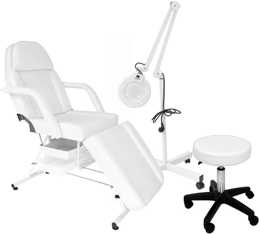 Cosnet Fotel Z Kuwetami Biały+Taboret+Lampa Lupa Basic Oława