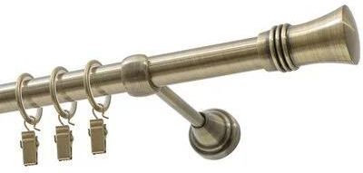 Karnisz pojedynczy w kolorze mosiądz antyczny, z zestawem montażowym.