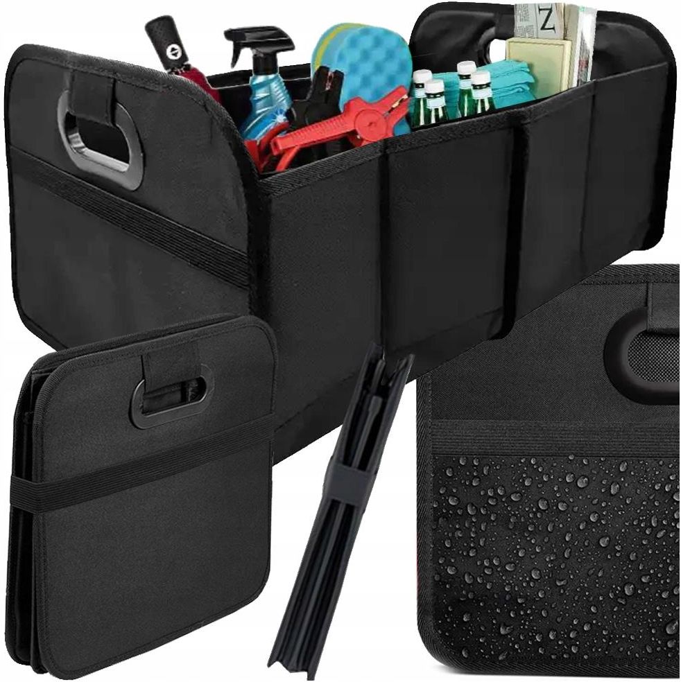 DUŻY ORGANIZER DO BAGAŻNIKA SAMOCHODU AUTA KUFER SKRZYNKA USZTYWNIONY BOX Organizer samochodowy to doskonałe rozwiązanie dla osób, które cenią porządek i wygodę podczas każdej podróży. Dzięki przemyślanej konstrukcji pomieścisz wszystko, co potrzebne – od zakupów, przez narzędzia, aż po akcesoria turystyczne. Solidne wykonanie i nowoczesny design sprawiają, że będzie pasować do każdego auta. Jego funkcjonalność ułatwi Ci codzienne użytkowanie i sprawi, że przestrzeń w samochodzie będzie zawsze uporządkowana. CECHY PRODUKTU Duży organizer oferuje ogromną przestrzeń do przechowywania, dzięki czemu bez problemu zmieścisz wszystkie niezbędne przedmioty w jednym miejscu. Pojemny środek pozwala uporządkować zawartość bagażnika tak, aby nic się nie przesuwało i zawsze było pod ręką. Składany korpus umożliwia szybkie złożenie organizera, co pozwala zaoszczędzić miejsce, gdy nie jest używany. Organizer z kieszenią ułatwia przechowywanie drobnych akcesoriów, które często się gubią, takich jak dokumenty czy kable. Wzmocnione dno zapewnia stabilność nawet przy większym obciążeniu, co zwiększa trwałość i komfort użytkowania. Wodoodporna tkanina chroni zawartość przed wilgocią, co sprawia, że organizer sprawdzi się również w trudnych warunkach. Poręczne uchwyty ułatwiają przenoszenie organizera, dzięki czemu możesz zabrać go ze sobą wszędzie, gdzie chcesz. Czarny kolor pasuje do każdego wnętrza samochodu i wygląda elegancko oraz nowocześnie. Rzepy do mocowania w bagażniku zapobiegają przesuwaniu się organizera podczas jazdy, co zwiększa bezpieczeństwo. Sztywny materiał zachowuje kształt nawet przy pełnym załadunku, co sprawia, że organizer zawsze wygląda estetycznie i profesjonalnie. POJEMNOŚĆ I FUNKCJONALNOŚĆ Zadbaj o porządek w swoim aucie, korzystając z dużego i pojemnego organizera samochodowego. Dzięki przemyślanemu układowi przegródek możesz rozdzielić zakupy, akcesoria i narzędzia, by wszystko miało swoje miejsce. Wreszcie nie musisz szukać rzeczy w całym bagażniku – masz je zawsze pod ręką. Organizer pomoże Ci utrzymać porządek podczas codziennych dojazdów i długich podróży. To rozwiązanie, które ułatwi Ci życie i doda komfortu każdej trasie. WODOODPORNOŚĆ I TRWAŁOŚĆ Nie musisz martwić się o wilgoć, zabrudzenia czy zmienne warunki pogodowe, ponieważ organizer wykonany jest z wodoodpornej tkaniny, która skutecznie chroni jego zawartość. Dzięki temu możesz bezpiecznie przewozić dokumenty, elektronikę czy tekstylia. Tkanina nie tylko zabezpiecza, ale także ułatwia czyszczenie – wystarczy wilgotna ściereczka. Dodatkowo sztywny materiał i wzmocnione dno zapewniają trwałość nawet przy intensywnym użytkowaniu. To praktyczne i solidne rozwiązanie do każdego auta. SPECYFIKACJA TECHNICZNA Kod produktu: 10161 Wysoka jakość wykonania Materiał: poliester Łatwe składanie i rozkładanie Ułatwia utrzymanie porządku w bagażniku Pojemny i praktyczny Posiada uchwyty do przenoszenia Kieszonka wewnętrzna z siateczki 2 komory główne Gumka do zabezpieczenia złożonego rganizera Uniwewrsalny Wytrymały Łatwy w czyszczeniu WYMIARY Długość: 45cm Szerokość: 32 cm Wysokość całkowita: 22,5 cm Wielkość komory: 22cm x 30cm x 17cm Wymiary złożonego organizera: 23cm x 32cm x 3cm ZESTAW ZAWIERA Fabtycznie nowy organizer do samochodu Foliowe opakowanie