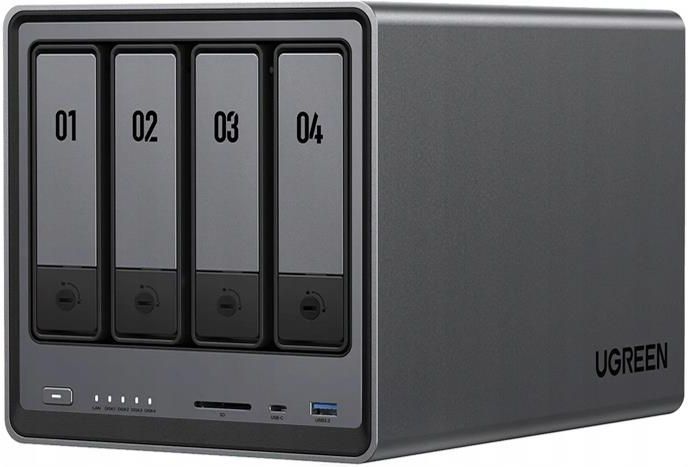UGREEN Serwer Plików Nas Dxp4800 4-dyskowy Intel N100 8gb Ddr5 2x 2.5gbe UGREEN DXP4800 to 4-zatokowy serwer plików NAS, oparty na 12. generacji procesorze Intel N100 i wyposażony w 8 GB pamięci RAM DDR5 oraz 2 porty 2.5GbE. Obsługuje on dyski 2,5” i 3,5” HDD/SSD i 2 dodatkowe dyski SSD M.2 NVMe, pozwalając na stworzenie magazynu danych o pojemności nawet 112 TB (dyski nie stanowią części zestawu). Urządzenie oferuje szybki dostęp do plików, rozbudowaną ochronę danych, transkodowanie wideo w 4K oraz wsparcie dla maszyn wirtualnych i aplikacji Docker. Decydując się na UGREEN DXP4800, zyskujesz kompletny system do backupu, pracy zdalnej, udostępniania danych i przechowywania multimediów – bez konieczności korzystania z chmury zewnętrznej. Specyfikacja Producent: UGREEN Model: DXP4800 Obsługiwane języki: Angielski, niemiecki, francuski, hiszpański, portugalski, włoski, chiński, japoński Zatoki dyskowe: 4 (SATA) System operacyjny: UGOS Pro Model procesora: Intel N100 Architektura CPU: Intel X86, 12. generacja, 4 rdzenie, 4 wątki Pamięć RAM: 8 GB DDR5 Obsługa ODECC: Tak Możliwość rozbudowy RAM: Do 16 GB Pamięć flash (dysk systemowy): 32 GB eMMC Sloty M.2 na dyski SSD: 2 Obsługiwane tryby RAID: JBOD, Basic, RAID 0, RAID 1, RAID 5, RAID 6, RAID 10 Maksymalna pojemność: 112 TB (4x 24 TB + 2x 8 TB SSD) Porty LAN: 2x RJ45 2.5GbE Gniazda PCIe: Brak Porty Thunderbolt 4: Brak Porty USB (przód): 1x USB-C (10 Gb/s), 1x USB-A (10 Gb/s) Porty USB (tył): 1x USB-A (5 Gb/s), 2x USB-A 2.0 (480 Mb/s) Czytnik kart SD: SD 3.0 HDMI: 4K Wbudowany moduł Wi-Fi: Nie Wymiary produktu: 25,76 x 17,81 x 17,81 cm (10.14 x 7.01 x 7.01 cala) W zestawie Serwer plików NAS Ugreen DXP480 Zasilacz (DC 12V/5A) Kabel zasilający x2 Kabel Ethernet CAT7 x2 Kluczyk do zatoki na dysk x2 Podkładka silikonowa pod SSD x2 Śrubki i śrubokręt Instrukcja obsługi Zalety Wydajny procesor Intel N100 12. generacji: 4 rdzenie, taktowanie do 3,4 GHz zapewnia płynną pracę przy dużym obciążeniu. Szybka i pojemna pamięć RAM DDR5: 8 GB standardowo (możliwość rozbudowy do 16 GB) dla efektywnej obsługi wielu zadań jednocześnie. Duża przestrzeń dyskowa – do 112 TB: 4 zatoki SATA obsługujące dyski 2,5” i 3,5” HDD/SSD oraz 2 sloty M.2 NVMe SSD. Wsparcie zaawansowanych trybów RAID: JBOD, Basic, RAID 0, 1, 5, 6, 10 dla optymalnego balansu między wydajnością a ochroną danych. Bardzo szybkie połączenie sieciowe: 2 porty 2.5GbE umożliwiają transfer do 625 MB/s, nawet 5 razy szybciej niż standard 1GbE. Bogate porty i interfejsy: USB-C i USB-A z przodu (10 Gb/s), USB-A z tyłu (5 Gb/s i 2x 2.0), czytnik kart SD 3.0, HDMI 4K 60Hz do bezpośredniego podłączenia do monitora/TV. Wydajność klasy desktopowej Procesor Intel N100 z 4 rdzeniami i taktowaniem do 3,4 GHz zapewnia płynną pracę nawet przy dużym obciążeniu. W połączeniu z 8 GB pamięci RAM DDR5 (z możliwością rozbudowy do 16 GB) serwer bez problemu obsługuje synchronizację plików, tworzenie kopii zapasowych, transkodowanie wideo i uruchamianie aplikacji. Wbudowany system operacyjny UGOS Pro działa na osobnej pamięci 32 GB eMMC, co pozwala zachować stabilność pracy niezależnie od konfiguracji magazynu danych. Do 112 TB przestrzeni na dane Serwer plików NAS UGREEN DXP4800 wyposażono w 4 zatoki SATA, które obsługują dyski 3,5” oraz 2,5” (HDD i SSD). Do dyspozycji użytkownika są także 2 sloty M.2 NVMe SSD, które mogą działać jako pamięć podręczna, przyspieszając dostęp do często używanych danych i poprawiając wydajność systemu. Całość umożliwia stworzenie magazynu o łącznej pojemności do 112 TB – to wystarczająco dużo miejsca na archiwum zdjęć, filmy, projekty firmowe czy backupy z wielu urządzeń. Przy pełnym wykorzystaniu dostępnej przestrzeni można zapisać nawet 39 milionów zdjęć lub 76 tysięcy filmów, co czyni ten model atrakcyjnym wyborem dla osób i firm pracujących z dużą ilością danych. Ochrona danych UGREEN DXP4800 umożliwia konfigurację RAID w trybach JBOD, Basic, RAID 0, 1, 5, 6 i 10. Tak szeroki wybór pozwala dobrać rozwiązanie odpowiednie do różnych scenariuszy – od maksymalnej wydajności po zwiększoną odporność na awarie. W przypadku konfiguracji z redundancją, np. RAID 1, 5, 6 czy 10, dane mogą zostać odzyskane nawet wtedy, gdy jeden z dysków ulegnie uszkodzeniu – to istotna funkcja zarówno dla użytkowników indywidualnych, jak i firm, które chcą chronić ważne pliki bez konieczności korzystania z zewnętrznych usług chmurowych. Stabilne połączenie i szybki transfer plików 2 porty 2.5GbE umożliwiają transfer danych z prędkością do 625 MB/s, czyli nawet 5-krotnie szybciej niż w przypadku standardowego łącza 1GbE. Kopiowanie 1 GB plików zajmuje mniej niż 2 sekundy, co znacząco przyspiesza codzienną pracę z dużymi plikami. Z przodu obudowy znajdują się porty USB-C i USB-A (oba o przepustowości 10 Gb/s), a z tyłu – port USB-A 5 Gb/s oraz 2 dodatkowe porty USB 2.0. Do tego dochodzi czytnik kart SD 3.0, który umożliwia szybki import materiałów z aparatów i kamer. Ponadto port HDMI obsługuje rozdzielczość 4K przy 60 Hz, dzięki czemu serwer można podłączyć bezpośrednio do monitora lub telewizora i odtwarzać filmy w wysokiej rozdzielczości. Pliki multimedialne można łatwo udostępniać. Inteligentne zarządzanie zdjęciami System AI Photo Album analizuje zdjęcia i automatycznie przypisuje je do kategorii, rozpoznając osoby, zwierzęta, obiekty czy krajobrazy. Możliwe jest także wyszukiwanie semantyczne, np. po hasłach opisujących sytuację, co ułatwia zarządzanie dużą bazą zdjęć. Wbudowana funkcja czyszczenia duplikatów szybko identyfikuje powtarzające się pliki i pozwala zaoszczędzić miejsce na dysku. System operacyjny UGOS Pro i prosta obsługa Dzięki systemowi UGOS Pro serwer plików NAS UGREEN DXP4800 oferuje prostą konfigurację i czytelny interfejs dos
