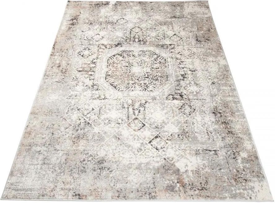 Dywan Villson 00.150a light gray z kolekcji Villson to prawdziwe dzieło sztuki, które wniesie do Twojego wnętrza elegancję i klasę. Jego głównym kolorem jest delikatny jasny szary, który nadaje dywanowi subtelności i uniwersalności, dzięki czemu łatwo dopasuje się do różnych stylów aranżacji. Kolory dodatkowe, takie jak beż i brąz, dodają głębi i charakteru, tworząc harmonijną kompozycję. Wzór dywanu jest wyjątkowo bogaty i złożony, centralnie umieszczony motyw przypomina tradycyjne ornamenty, które mogą nawiązywać do perskich lub orientalnych wzorów. Centralny medalion jest otoczony geometrycznymi kształtami, które rozchodzą się promieniście, tworząc wrażenie ruchu i dynamiki. Całość jest subtelnie postarzana, co dodaje dywanowi vintage’owego uroku. Dywan ma prostokątny kształt i jest pozbawiony frędzli, co nadaje mu nowoczesny wygląd, mimo tradycyjnego wzoru. Jego tekstura wydaje się być miękka i przyjemna w dotyku, co z pewnością docenią osoby, które lubią chodzić boso po domu. Inspiracją do urządzenia wnętrza z tym dywanem może być połączenie klasyki z nowoczesnością. Wyobraź sobie salon z minimalistycznymi meblami w odcieniach bieli i szarości, gdzie dywan Villson 00.150a light gray staje się centralnym punktem, dodając wnętrzu ciepła i charakteru. Możesz dodać kilka akcentów w postaci poduszek w kolorach beżu i brązu, które będą współgrać z dodatkowymi barwami dywanu. Lampa z abażurem w stylu retro oraz drewniane elementy dekoracyjne dopełnią całości, tworząc przestrzeń pełną harmonii i stylu. Zdecydowanie zachęcamy do zakupu dywanu Villson 00.150a light gray, który przypadnie do gustu osobom ceniącym sobie elegancję, klasykę z nutą nowoczesności oraz wysoką jakość wykonania. Idealny dla miłośników wnętrz z duszą, którzy chcą dodać swojemu domowi wyjątkowego charakteru. Niech ten dywan stanie się sercem Twojego salonu, wprowadzając do niego spokój i harmonię.