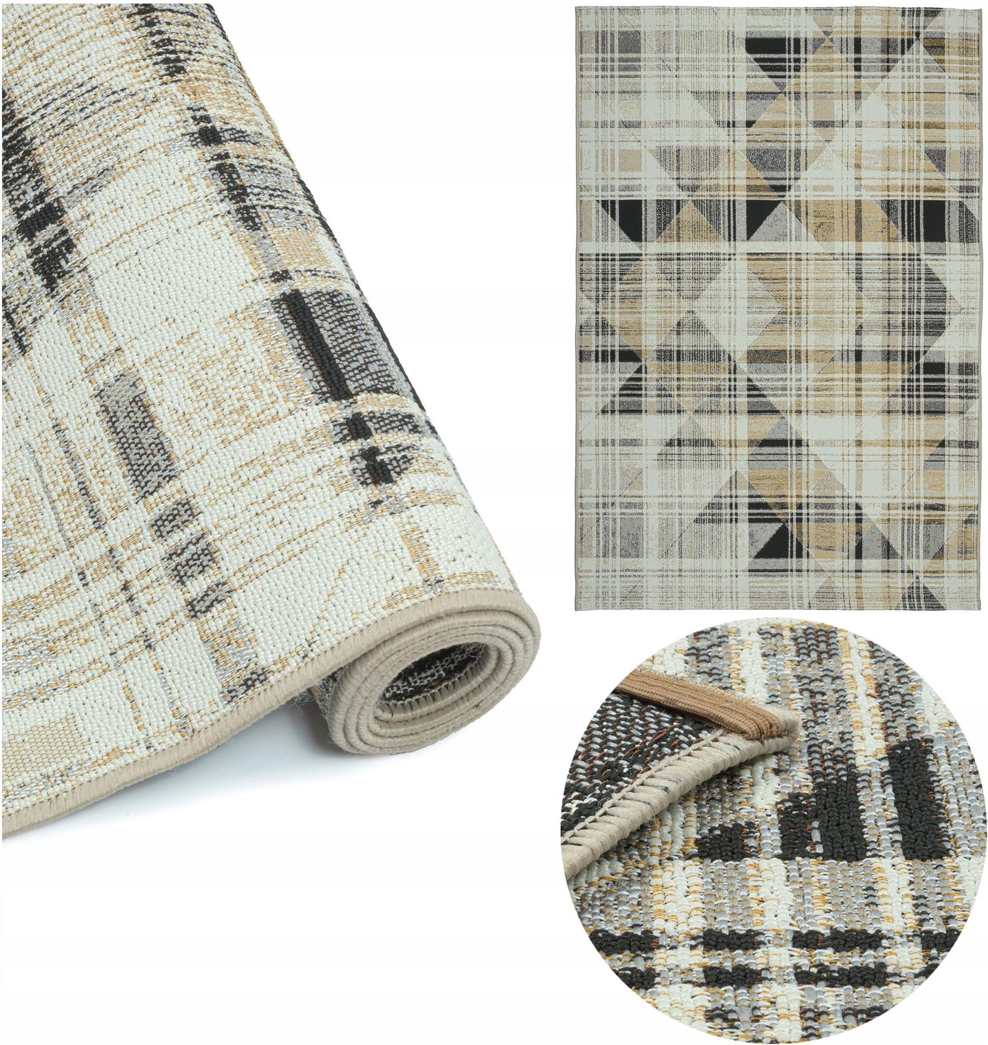 Dywan dywanik chodnik ART DECO 80x150 modny beżowy nowoczesny gruby MIX Oto dywan do zadań specjalnych! Ze względu na wysoką jakość i hipoalergiczność wykorzystanej tkaniny (polipropylen) oraz staranne wykonanie Dara sprawdzi się nie tylko wewnątrz domu, ale także na zewnątrz. Tak, możesz ułożyć go na balkonie lub tarasie, a nawet w… ogrodzie! To możliwe, ponieważ Dara jest wyjątkowo odporny na warunki pogodowe, a także niezwykle łatwy w czyszczeniu. 80x150 cm | wytrzymałość | bezpieczeństwo | piękny wygląd | super na zewnątrz Dywan na zewnątrz to nie fanaberia! Dywany zwiększają estetykę i przytulność wnętrz. Wszyscy o tym wiemy. Najczęściej spotykamy je w salonach, sypialniach i gabinetach... Coraz częściej pojawiają się jednak na zewnątrz! Dzieje się tak, ponieważ rośnie świadomość na temat zdrowia, a razem z nią – chęć do częstszego przebywania na świeżym powietrzu. To jednak nie powód, aby przestać otaczać się pięknymi rzeczami, a wręcz przeciwnie! Piękne i eleganckie tekstylia pozwalają wytworzyć wyjątkowy klimat, który sprzyja wypoczynkowi. I właśnie stąd moda na tzw. dywany zewnętrzne (takie jak Dara), układane nie tylko na balkonach, ale także bezpośrednio na trawie. Dywan outdoorowy – nie tylko outdoorowy Wysoka jakość wykonania i niesamowity geometryczny wzór sprawiają, że Dara doskonale sprawdzi się wewnątrz Twojego domu. Jego kolorystyka została utrzymana w subtelnych odcieniach ziemi (brązach i beżach), dzięki czemu jest bardzo uniwersalny. Z tego powodu bez problemu odnajdzie się w różnych aranżacjach. Ze względu na dużą wytrzymałość może być używany nawet w kuchniach, jadalniach iprzedpokojach. Bez względu na to, gdzie go położysz, na pewno stanie się idealnym uzupełnieniem pomieszczenia! Dywan Dara jest łatwy w czyszczeniu Dywany zewnętrzne są szczególnie narażone na zabrudzenia. Na szczęście Dara jest niesamowicie łatwy w utrzymaniu. Stosując się do kilku wskazówek będziesz cieszyć się jego pięknem przez dłuższy czas. Regularnie odkurzaj. Natychmiast usuwaj wszelkie plamy. Mokry dywan susz w pozycji rozłożonej w cieniu. W razie potrzeby skorzystaj z profesjonalnego czyszczenia. Dara – hipoalergiczny dywan zewnętrzny Oferowany dywan posiada certyfikat Oeko-Tex Standard 100, który świadczy o tym, że nie zawiera żadnych niebezpiecznych substancji. To jednak nie wszystko! Co równie ważne, Dara przejawia właściwości hipoalergiczne. Tym samym zapobiega rozwojowi roztoczy i bakterii, a także nie gromadzi kurzu na swojej powierzchni. Zależy Ci na jeszcze większym bezpieczeństwie? Stosując matę antypoślizgową lub rzepy antypoślizgowe, zapobiegniesz przypadkowemu przesuwaniu się dywanu. Cechy produktu Linia: Dara Rodzaj: outdoor, płasko tkany Kształt: prostokątny Wzór: geometryczny Kolor:odcienie szarości i brązu Materiał: polipropylen Grubość: 7 mm Wysokość runa: 5 mm Gramatura: 1 kg/m2 Rozmiar: 80 cm x 150 cm (dopuszczalne 5% odchylenia od standardowych wymiarów oraz nieznaczna nierówność krawędzi) Uwaga! Do wysyłki dywan rolowany jest runem na zewnątrz. Po rozpakowaniu daj mu trochę czasu, aby odzyskał pierwotny kształt.