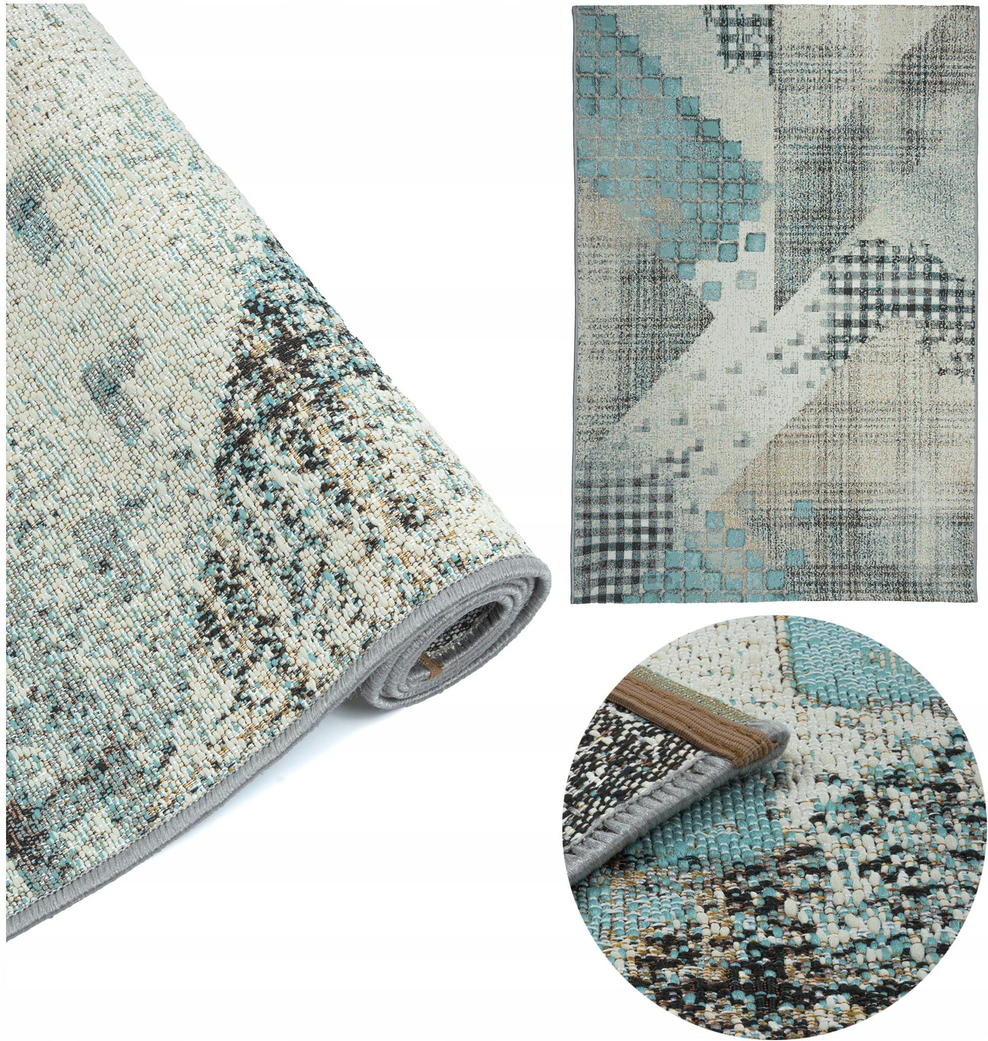 Dywan dywanik chodnik nowoczesny 120x170 modny gruby miękki MIX do salonu Oto dywan do zadań specjalnych! Ze względu na wysoką jakość i hipoalergiczność wykorzystanej tkaniny (polipropylen) oraz staranne wykonanie Dara sprawdzi się nie tylko wewnątrz domu, ale także na zewnątrz. Tak, możesz ułożyć go na balkonie lub tarasie, a nawet w… ogrodzie! To możliwe, ponieważ Dara jest wyjątkowo odporny na warunki pogodowe, a także niezwykle łatwy w czyszczeniu. 120x170 cm | wytrzymałość | bezpieczeństwo | piękny wygląd | super na zewnątrz Dywan na zewnątrz to nie fanaberia! Dywany zwiększają estetykę i przytulność wnętrz. Wszyscy o tym wiemy. Najczęściej spotykamy je w salonach, sypialniach i gabinetach... Coraz częściej pojawiają się jednak na zewnątrz! Dzieje się tak, ponieważ rośnie świadomość na temat zdrowia, a razem z nią – chęć do częstszego przebywania na świeżym powietrzu. To jednak nie powód, aby przestać otaczać się pięknymi rzeczami, a wręcz przeciwnie! Piękne i eleganckie tekstylia pozwalają wytworzyć wyjątkowy klimat, który sprzyja wypoczynkowi. I właśnie stąd moda na tzw. dywany zewnętrzne (takie jak Dara), układane nie tylko na balkonach, ale także bezpośrednio na trawie. Dywan outdoorowy – nie tylko outdoorowy Wysoka jakość wykonania i niesamowity geometryczny wzór sprawiają, że Dara doskonale sprawdzi się wewnątrz Twojego domu. Jego kolorystyka została utrzymana w subtelnych odcieniach ziemi (brązach i beżach), dzięki czemu jest bardzo uniwersalny. Z tego powodu bez problemu odnajdzie się w różnych aranżacjach. Ze względu na dużą wytrzymałość może być używany nawet w kuchniach, jadalniach iprzedpokojach. Bez względu na to, gdzie go położysz, na pewno stanie się idealnym uzupełnieniem pomieszczenia! Dywan Dara jest łatwy w czyszczeniu Dywany zewnętrzne są szczególnie narażone na zabrudzenia. Na szczęście Dara jest niesamowicie łatwy w utrzymaniu. Stosując się do kilku wskazówek będziesz cieszyć się jego pięknem przez dłuższy czas. Regularnie odkurzaj. Natychmiast usuwaj wszelkie plamy. Mokry dywan susz w pozycji rozłożonej w cieniu. W razie potrzeby skorzystaj z profesjonalnego czyszczenia. Dara – hipoalergiczny dywan zewnętrzny Oferowany dywan posiada certyfikat Oeko-Tex Standard 100, który świadczy o tym, że nie zawiera żadnych niebezpiecznych substancji. To jednak nie wszystko! Co równie ważne, Dara przejawia właściwości hipoalergiczne. Tym samym zapobiega rozwojowi roztoczy i bakterii, a także nie gromadzi kurzu na swojej powierzchni. Zależy Ci na jeszcze większym bezpieczeństwie? Stosując matę antypoślizgową lub rzepy antypoślizgowe, zapobiegniesz przypadkowemu przesuwaniu się dywanu. Cechy produktu Linia: Dara Rodzaj: outdoor, płasko tkany Kształt: prostokątny Wzór: geometryczny Kolor:odcienie błękitu i szarości Materiał: polipropylen Grubość: 7 mm Wysokość runa: 5 mm Gramatura: 1 kg/m2 Rozmiar: 120 cm x 170 cm (dopuszczalne 5% odchylenia od standardowych wymiarów oraz nieznaczna nierówność krawędzi) Uwaga! Do wysyłki dywan rolowany jest runem na zewnątrz. Po rozpakowaniu daj mu trochę czasu, aby odzyskał pierwotny kształt.