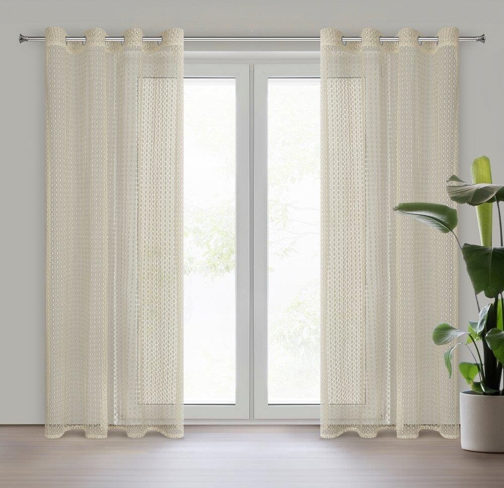 Eurofirany Firana 140X250 Mirella Beżowa O Strukturze Siatki Gotowa Na Przelotkach Oława