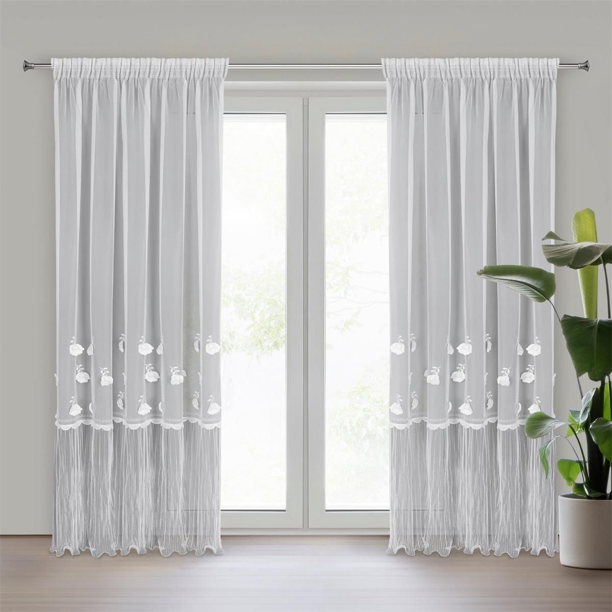 Eurofirany Firana Gotowa Na Taśmie Avril 140X270 Biała Zdobiona Kwiatowymi Aplikacjami Oraz Falbaną Oława