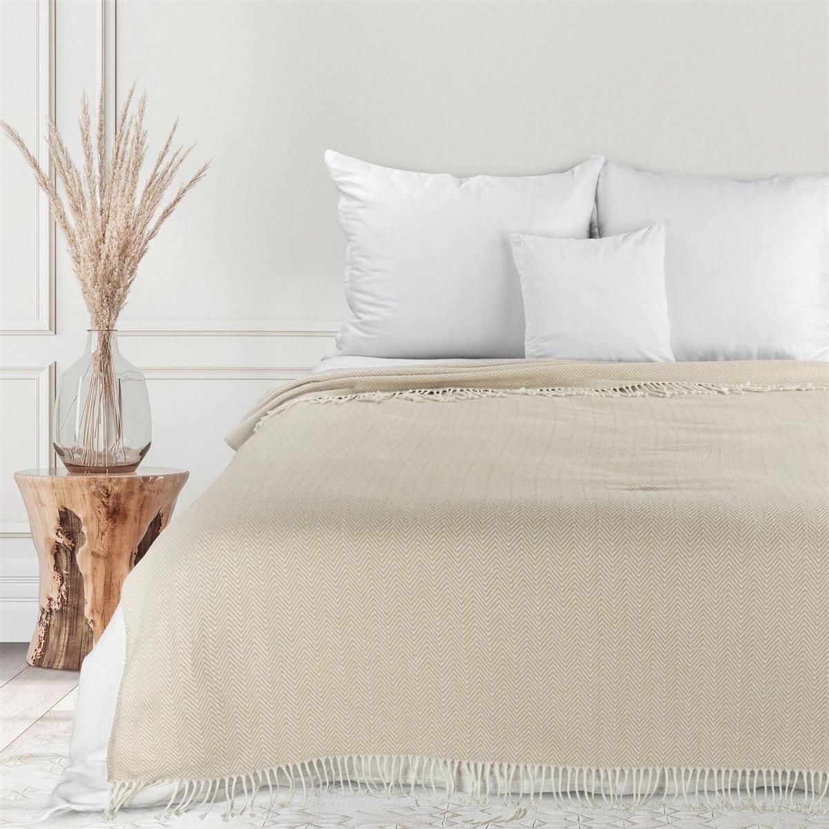 Eurofirany Koc Narzuta 180X220 Pled Beżowy Kremowy Z Frędzlami Oława