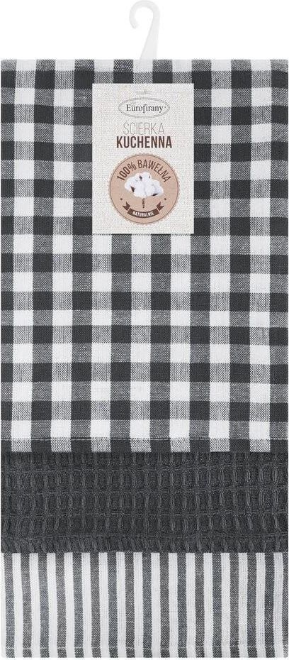 Eurofirany Komplet Ścierek Kuchennych 50X70 Lucy Stalowa Biała Kratka 3Szt. Oława