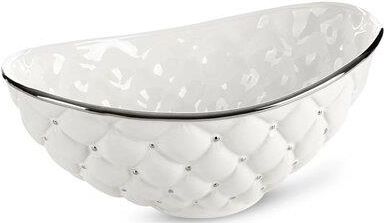 Stylowa misa ceramiczna, która zachwyca swoim eleganckim designem i dbałością o detale. Jej powierzchnię zdobi wytłaczany wzór przypominający pikowanie, nadający jej wyjątkową fakturę i luksusowy charakter. Całość uzupełniają drobne srebrne akcenty, które subtelnie odbijają światło, dodając blasku i wyrafinowania. Wykonana z wysokiej jakości glinki ceramicznej, jest trwała i estetyczna. Doskonale sprawdzi się jako efektowny element dekoracyjny lub funkcjonalne naczynie na owoce. Idealna do wnętrz w stylu glamour, klasycznym i nowoczesnym. Zaleca się czyszczenie tylko wilgotną, delikatną ściereczką.