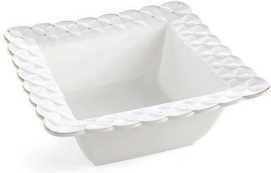 Misa dekoracyjna BELIA to elegancki i wyrafinowany element dekoracyjny, który doda blasku każdemu wnętrzu. Jej powierzchnia ozdobiona jest delikatnym, wypukłym wzorem, który nadaje jej wyjątkowej tekstury i artystycznego charakteru. Brzegi misy subtelnie cieniowane złotym kolorem tworzą efekt przejścia od głębi do jasności, dodając całości luksusowego wykończenia. Idealna do wyeksponowania owoców czy innych dekoracji, misa stanowi zarówno funkcjonalny, jak i stylowy dodatek do salonu, jadalni czy kuchni. Zaleca się czyszczenie wyłącznie, wilgotną delikatną ściereczką.