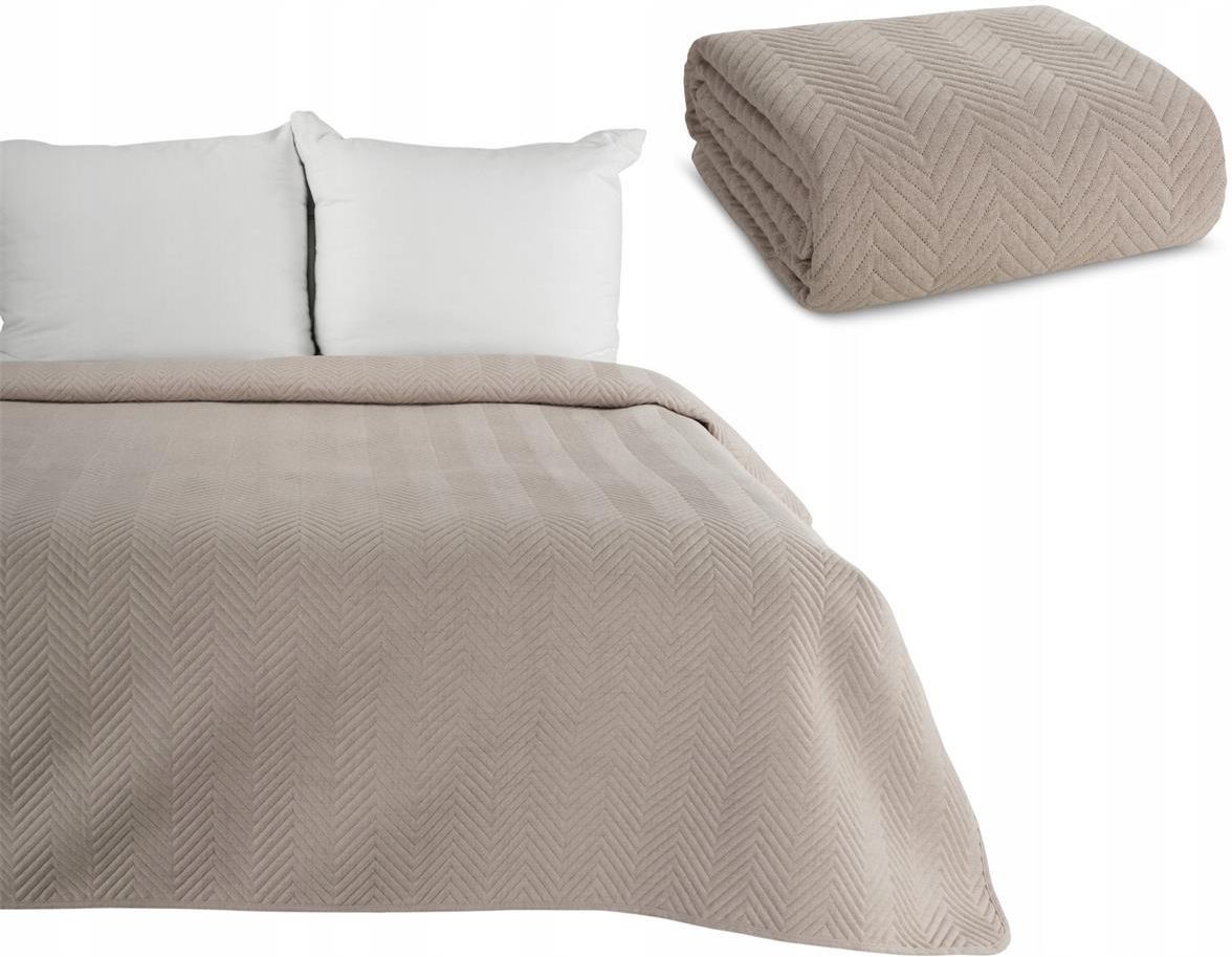 Narzuta Na Łóżko 170x210 Eurofirany LEN 3 beż Pikowana o Strukturze Lnu Narzuta na łóżko LEN powstała z matowego materiału o strukturze naturalnego lnu. Spodnia strona to delikatna mikrofibra, która zapobiega przesuwaniu się tkaniny, a miękkie wypełnienie między warstwami tkanin sprawia, że narzuta miękko i estetycznie otula łóżko. Całość połączona została za pomocą zgrzewania na gorąco (hotpress) w formie jodełki. Metoda hotpress pozwala na uzyskanie dowolnych wzorów na narzutach oraz zwiększa trwałość produktu. Taka dekoracja, sprawdzi się również jako cienka kołdra, a nawet poza sypialnią - jako elegancka narzuta na sofę. Łóżko to centralny punkt każdej sypialni, zatem jego estetyka, ma w sypialni zasadnicze znaczenie. Narzuta na łóżko powinna podkreślać styl sypialni i charakter jej właściciela. Narzuta na łóżko to także sposób na zachowanie świeżości pościeli przez dłuższy czas. Oprawa łóżka to kropka nad "i" w dekoracji sypialni dlatego proponujemy modne i nowoczesne narzuty, które pomogą urządzić wnętrze. Dane techniczne: długość: 210 cm szerokość: 170 cm skład: 100% poliester gramatura tkaniny: 260 (wierzch) +120 (wypełnienie) +65 (spód) gsm temperatura prania: 30°C temperatura prasowania: 110°C EUROFIRANY CHON/LEN/3/BEŻ/170