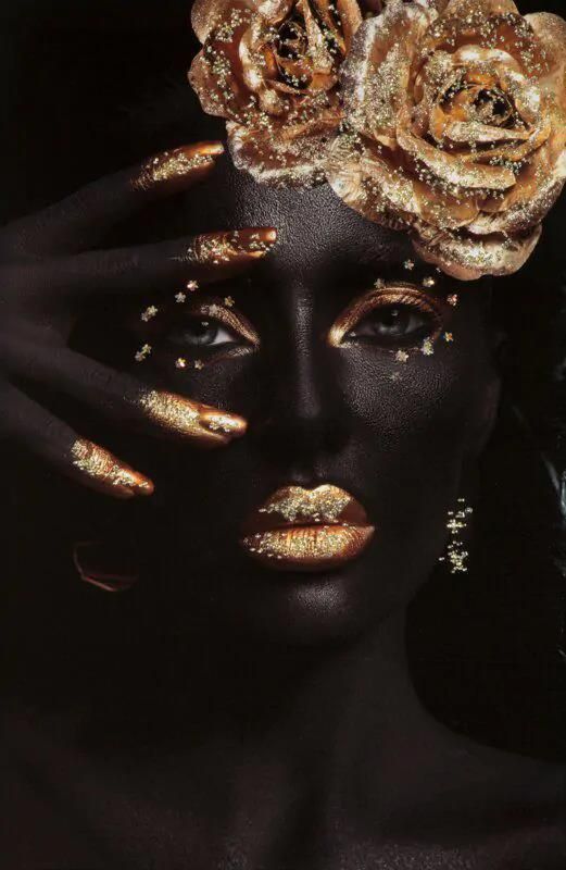 Eurofirany Obraz Ręcznie Malowany Glamour Kobieta Z Afryki 60X90 Czarny+Złoty Oława