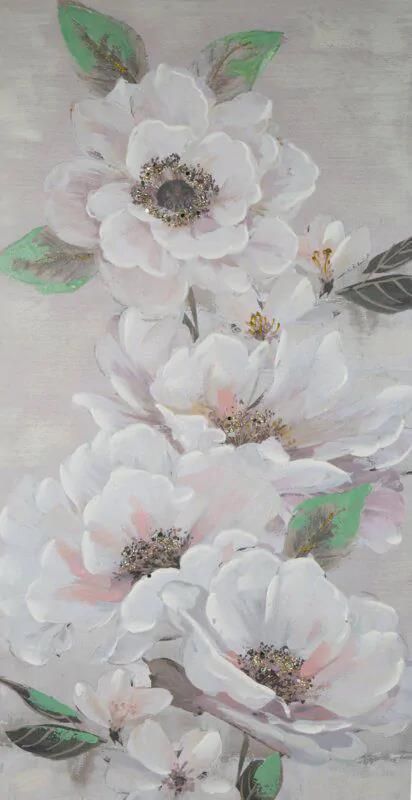 Eurofirany Obraz Ręcznie Malowany Kwiaty Z Brokatem 60X120 Beżowy+Różowy Oława