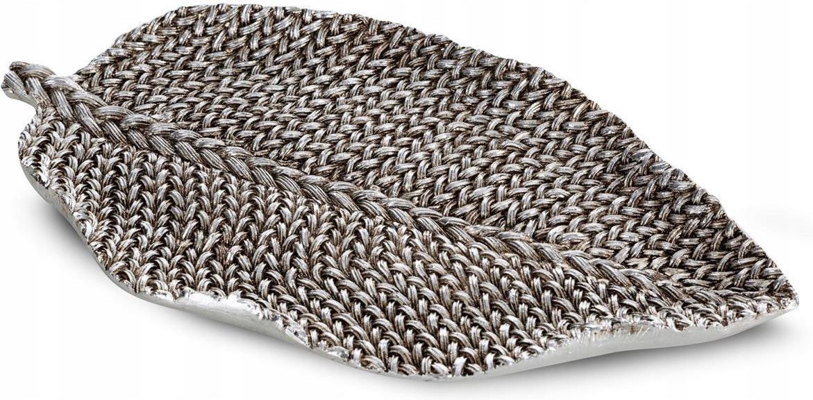 Patera w kształcie liścia bananowca MOLI, wykonana z żywicy poliestrowej, to wyjątkowy element dekoracyjny, który łączy naturalny design z nowoczesnym stylem. Cała powierzchnia patery zdobiona jest wzorem imitującym pleciony sweterek, co nadaje jej ciepły, teksturalny wygląd i przytulny charakter. Ten interesujący wzór kontrastuje z elegancką formą liścia, tworząc harmonijną kompozycję, która wyróżnia się na tle klasycznych naczyń. Patera idealnie sprawdzi się jako elegancka samodzielna ozdoba na stole czy komodzie. Jej unikalny design wprowadza do wnętrza odrobinę tropikalnego uroku oraz przyjemnej, teksturalnej estetyki.