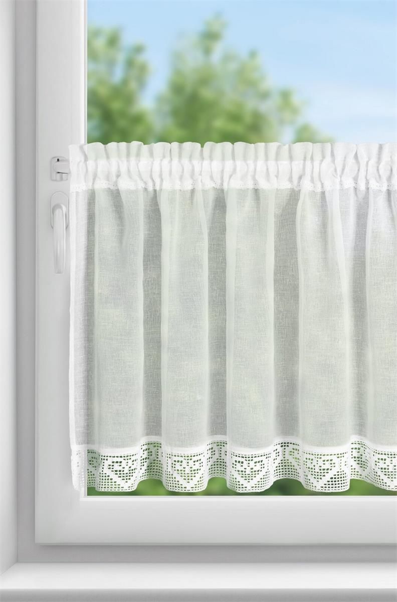 Zazdrostka „Gabi” 150×60 cm – kremowa z koronkową lamówką i ażurowym wzorem, tunel Romantyczna delikatność z łatwym montażem Zazdrostka Gabi o wymiarach 150 × 60 cm wykonana jest z etaminy (100 % poliester, gramatura 110 g/m²), w eleganckim kremowym odcieniu. Dzięki ażurowemu wzorowi w serduszka i …