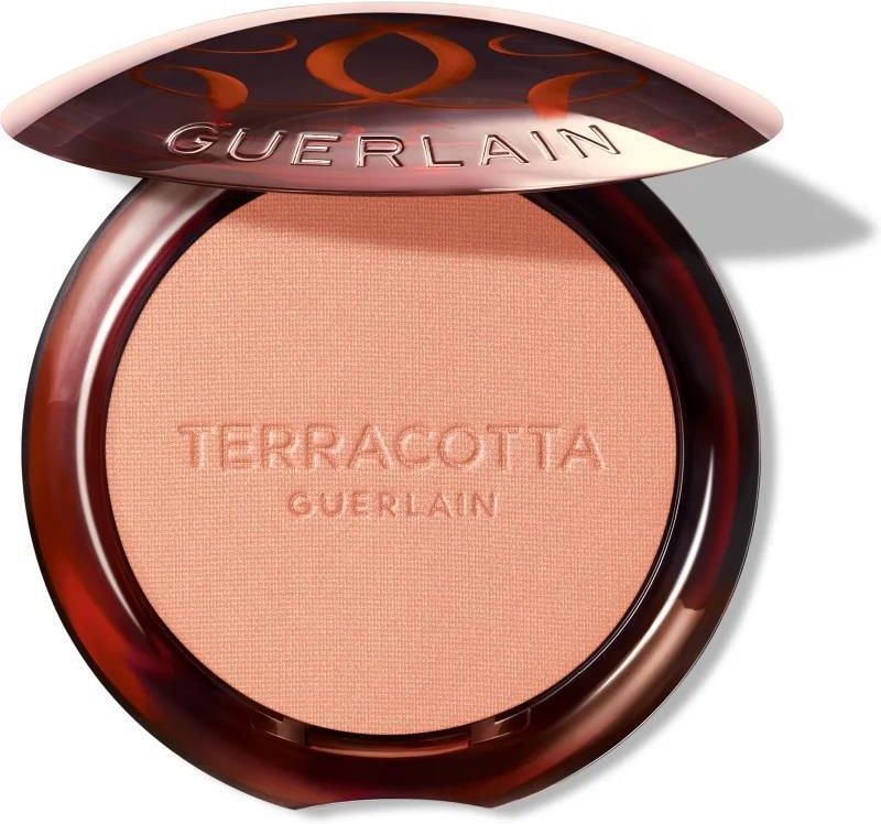 Róż Terracotta Blush, którego formuła składa się w 90% z naturalnych składników¹, podkreśla kości policzkowe i transparentnie rozświetla je delikatnym kolorem, który wygląda tak świeżo, jak policzki po spacerze na świeżym powietrzu. Dzięki lekkiej i przewiewnej konsystencji, ten długotrwały i wygodny pudrowy róż pozwala skórze zabłysnąć naturalnymi niuansami pod idealnie roztartym, trwałym i lekkim welonem koloru. Violette, dyrektor kreatywna Guerlain ds. makijażu, opracowała paletę 6 odcieni różu, które odzwierciedlają oryginalne kolory ziemi, prezentowane w nowym mini formacie kultowego pudru w kompakcie z terakoty. 6 odcieni, które można nosić w zależności od odcienia skóry lub nastroju: 3 odcienie, nude, różany, koralowy, każdy w 2 intensywnościach: jasnym i ciemnym. ¹Zgodnie z normą ISO 16128, pozostałe 10% pomaga utrzymać właściwości, konsystencję i pigmentację formuły. ²Pomiar instrumentalny i test kliniczny na 30 kobietach o jasnej karnacji.