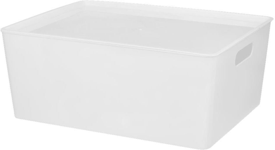 Pojemnik do przechowywania z pokrywką i uchwytem do przenoszenia. Pojemnik jest wykonany z polipropylenu i występuje w dwóch różnych rozmiarach.