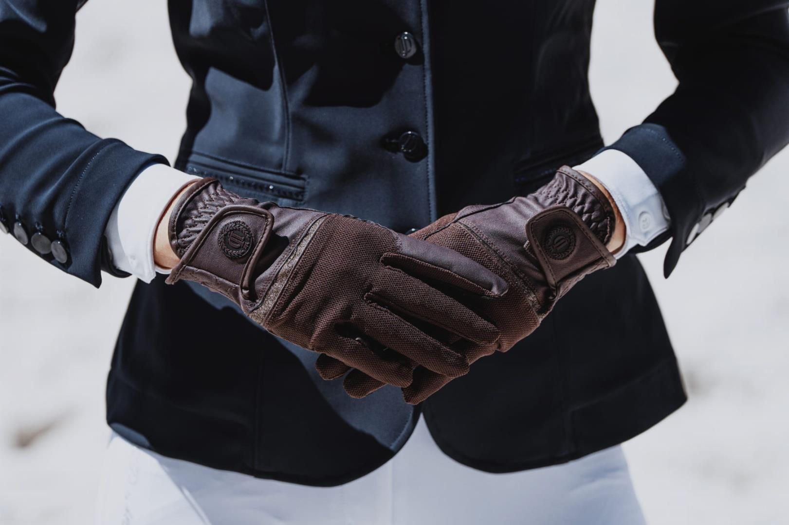 Rękawiczki jeździeckie Celestia to stylowe i funkcjonalne rękawiczki stworzone z myślą o komforcie podczas jazdy konnej. Świetnie sprawdzą się na lato. Wykonane z elastycznego, oddychającego materiału zapewniają doskonałe dopasowanie do dłoni. Idealne na treningi i codzienne jazdy, gwarantują wygodę niezależnie od warunków pogodowych. rękawiczki z oddychającą siateczką na palcach i dłoni posiadają subtelne logo i błyszczącą wstawkę przystosowane do używania ekranów dotykowych idealne rękawiczki na cieplejsze dni dostępne w kolorze czarnym i brązowym Skład produktu: 70% nylon, 30% poliuretan Wskazówki pielęgnacyjne prać w temp. 30 stopni nie prasować nie suszyć w suszarce bębnowej wstawka do ekranów dotykowych idealne na lato zapinane na rzepv