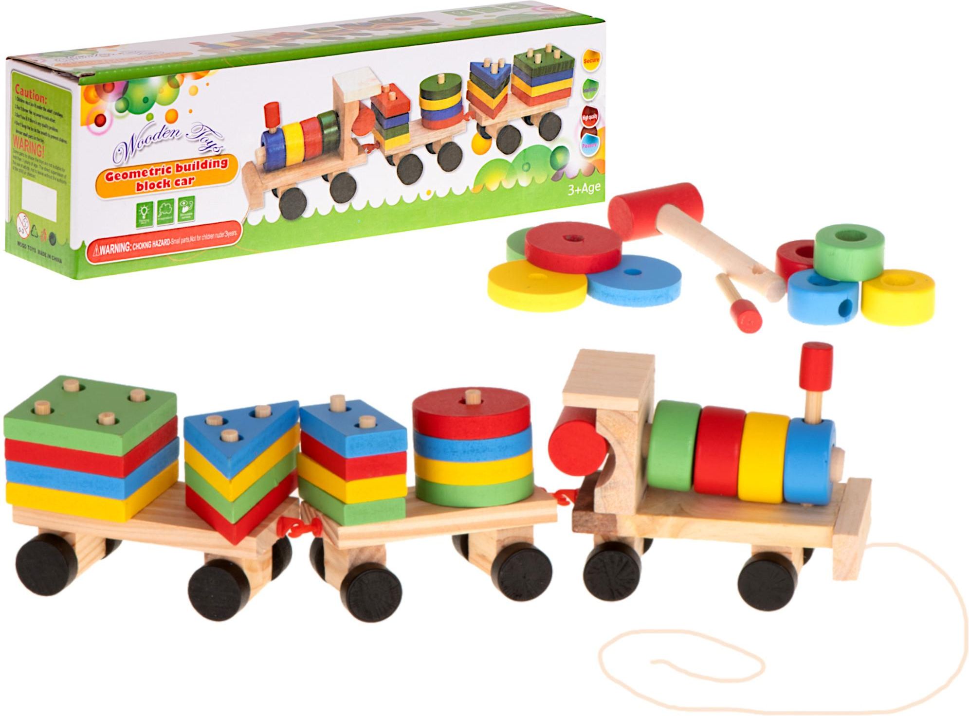 Kik Sorter Drewniany Układanka Zręcznościowa Pociąg Lokomotywa + Wagony 30Cm Oława