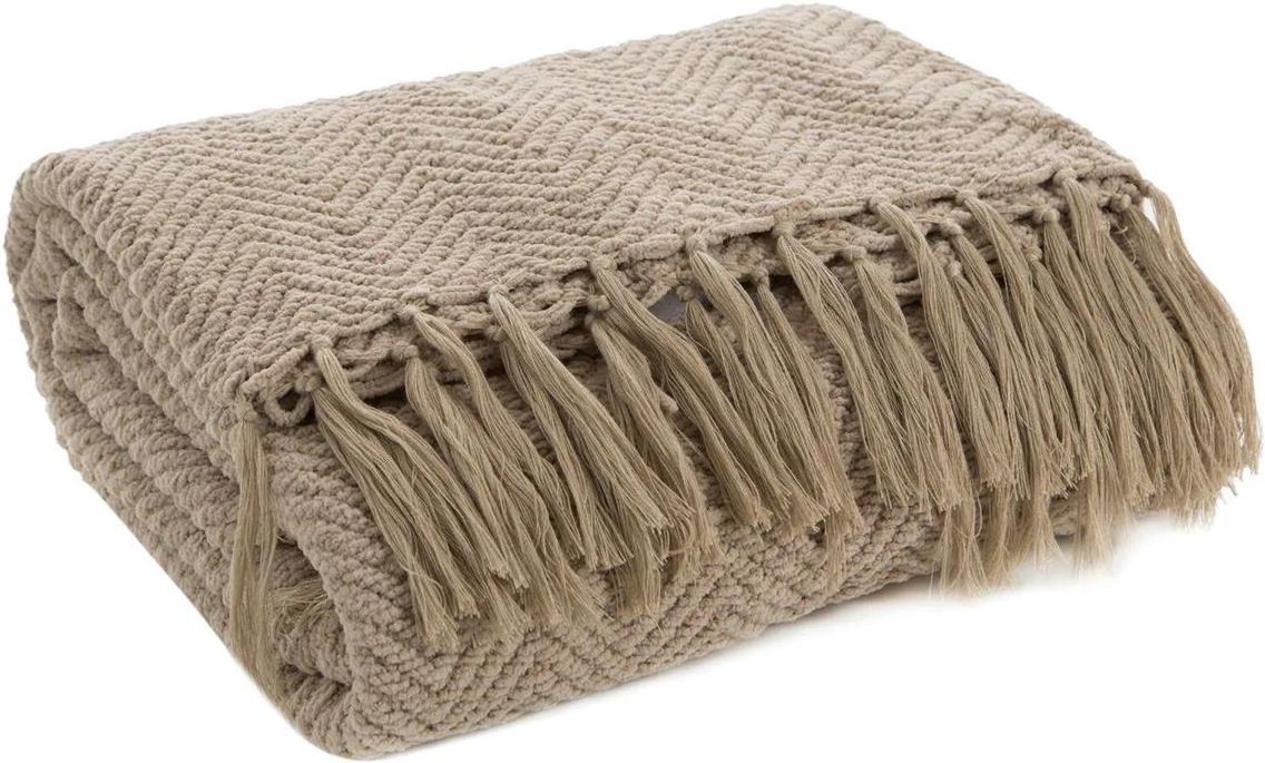 Koc Milano, 130x170, z frędzlami, beżowy, Eurofirany Oława